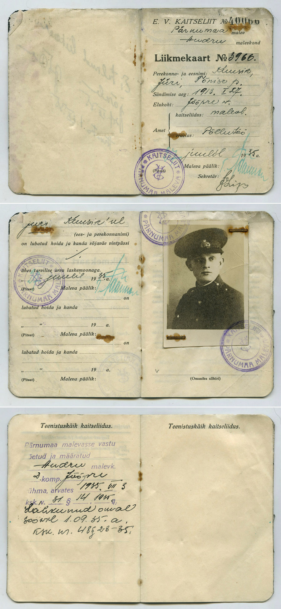 Veel üks KL liikmekaart samast Jõõpre rühmast.