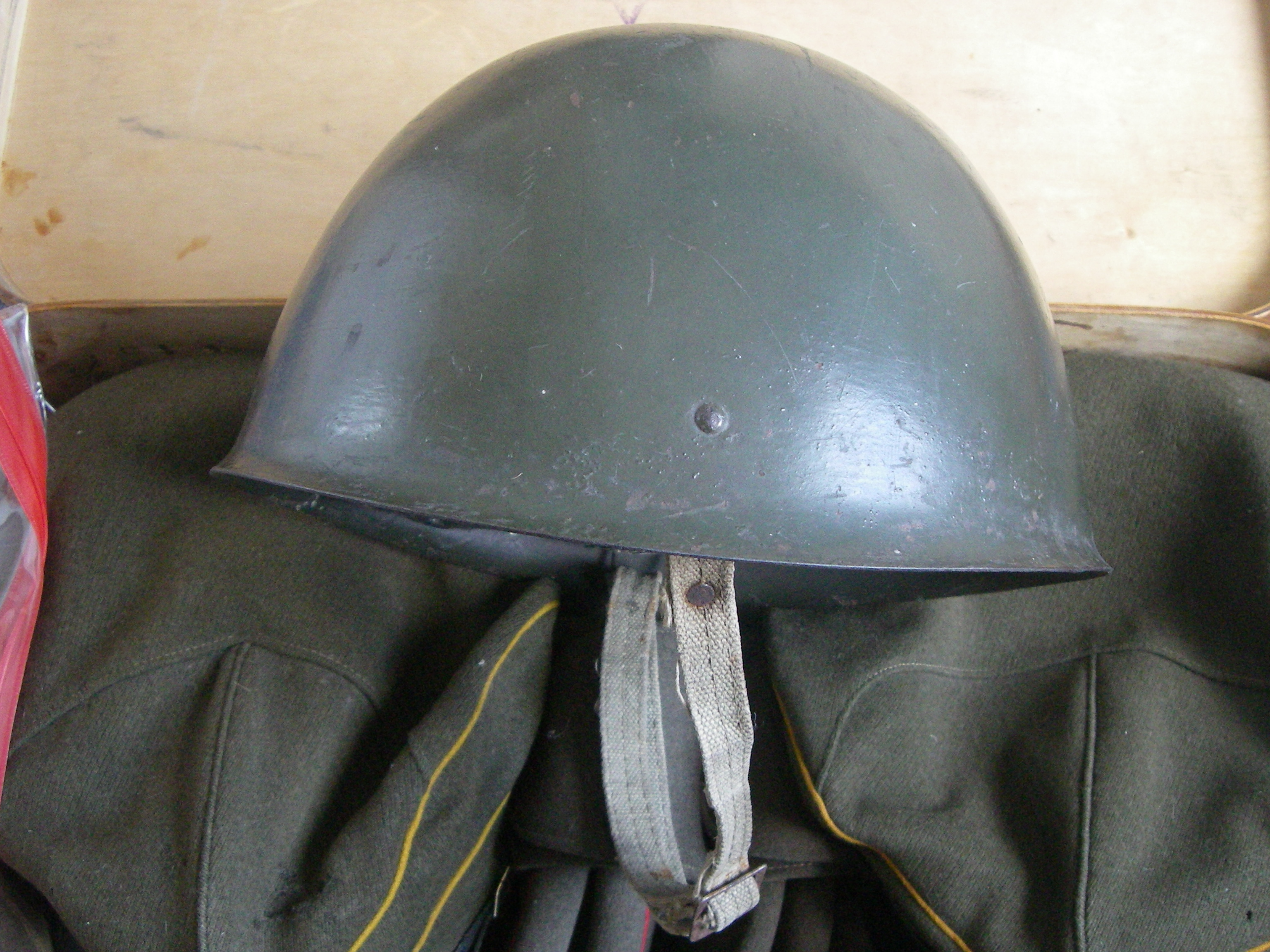 Tegu peaks olema praeguse Rootsi kiivriga, mis ka KL kasutusel. Neid tuli omal ajal koos selle rohelise rootsi vormiga igasse KL lattu. Kinnituse jäänused viitavad küll sellele.