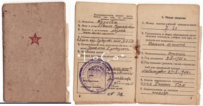 Punaarmeelase raamat. Välja antud dets. 1944.a.