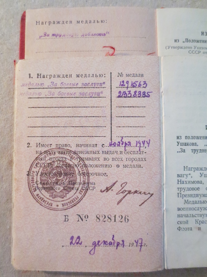Vahest harva juhtus, et inimene sai ühesuguseid medaleid kaks. Ühe linna sõjakomissariaat andis ühe, teise linna oma, teise. Või on üks medal töö eest, teine sõjast osavõtjale.
