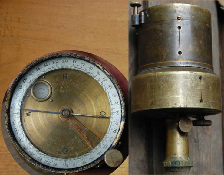 Lakas poolteisemeetrine teisest otsast laienev kast, nöörist sang. Ärevus sees- võibolla aadu, willemi või nikolai moona või müristaja enda kast? Ptüi, kuramus, sees mingi kolmjalg. Nii vana et ei osatud veel liigendiga teha, tuleb ülespanekul pronkspoldil jalg hoopis kõrvale nihutada. Ja riist kinnitub umbes morse 4 koonusele.