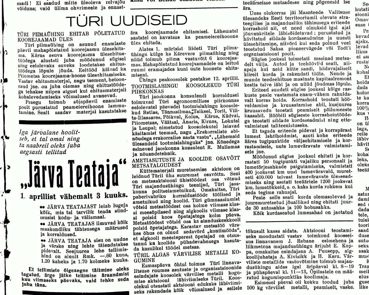 Ei mäletagi, kas ma neid artikleid juba postitanud olen aga esmapilgul ma neid siin ei näinud. Et siia on Türi teema kokku kogunenud, kaasa arvatud saatemast, panen ka siia.
