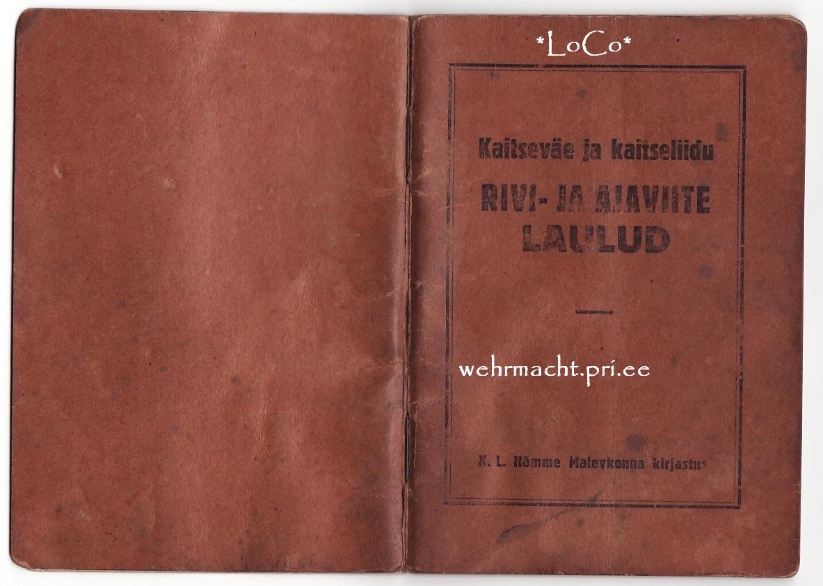 Kaitseväe- ja Kaitseliidu RIVI- JA AJAVIITE LAULUD. Välja antud KL Nõmme Malevkonna kirjastuse poolt ja trükitud Eesti Ühistrükikojas 1936.a. Laulikus on kokku 75 laulu.