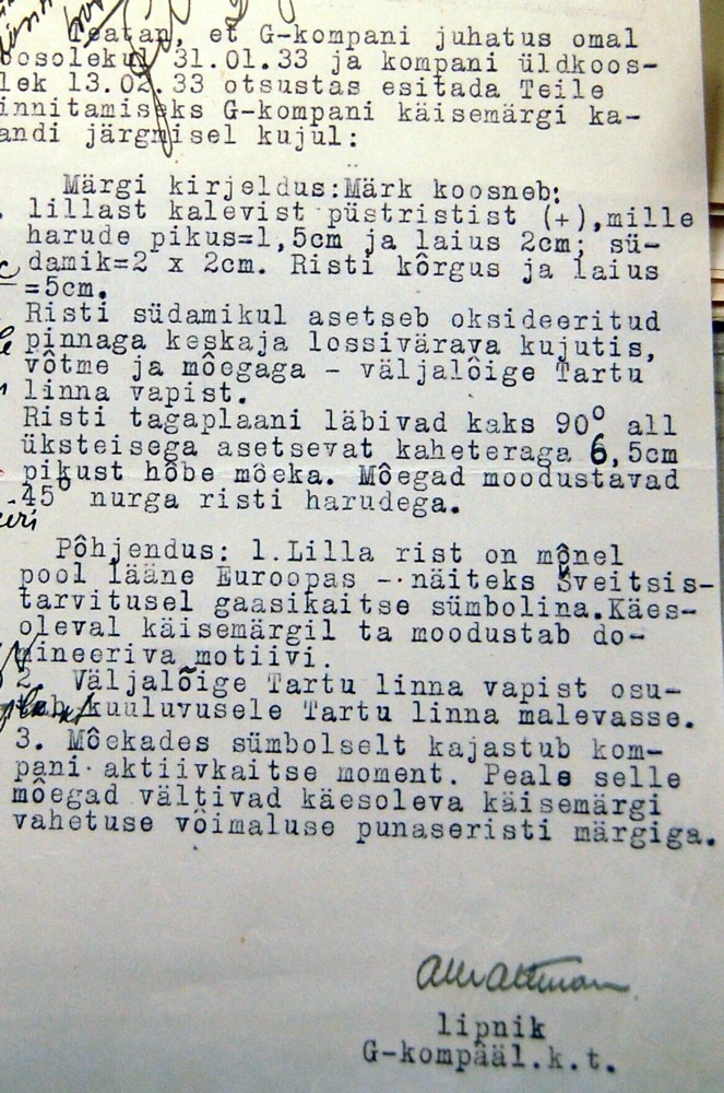 Teine kuub: All selgitav tekst - Kaitseliidu Tartumaa maleva mundri kuub 1930 aastad.