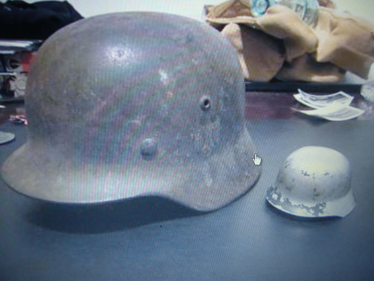 mul tekkis mõte korjata suure kiivri kõrvale ka väike vend. no whermactil on juba väike vend, luftwaffel veel pole ja ss ka pole. paistab et need väiksed kiivrid olid ka värvitud ja dekaaliga kui ka ilma värvita kuid dekaaliga. kui kellelgi on müüa väikest kiivrikest olen ostja. riiulil ju kena vaadata kui vennad koos on. suur pott ja väike suveniro. paistab et politsei dekaalidega ja tuletõrje mini kiivreid ei esine.