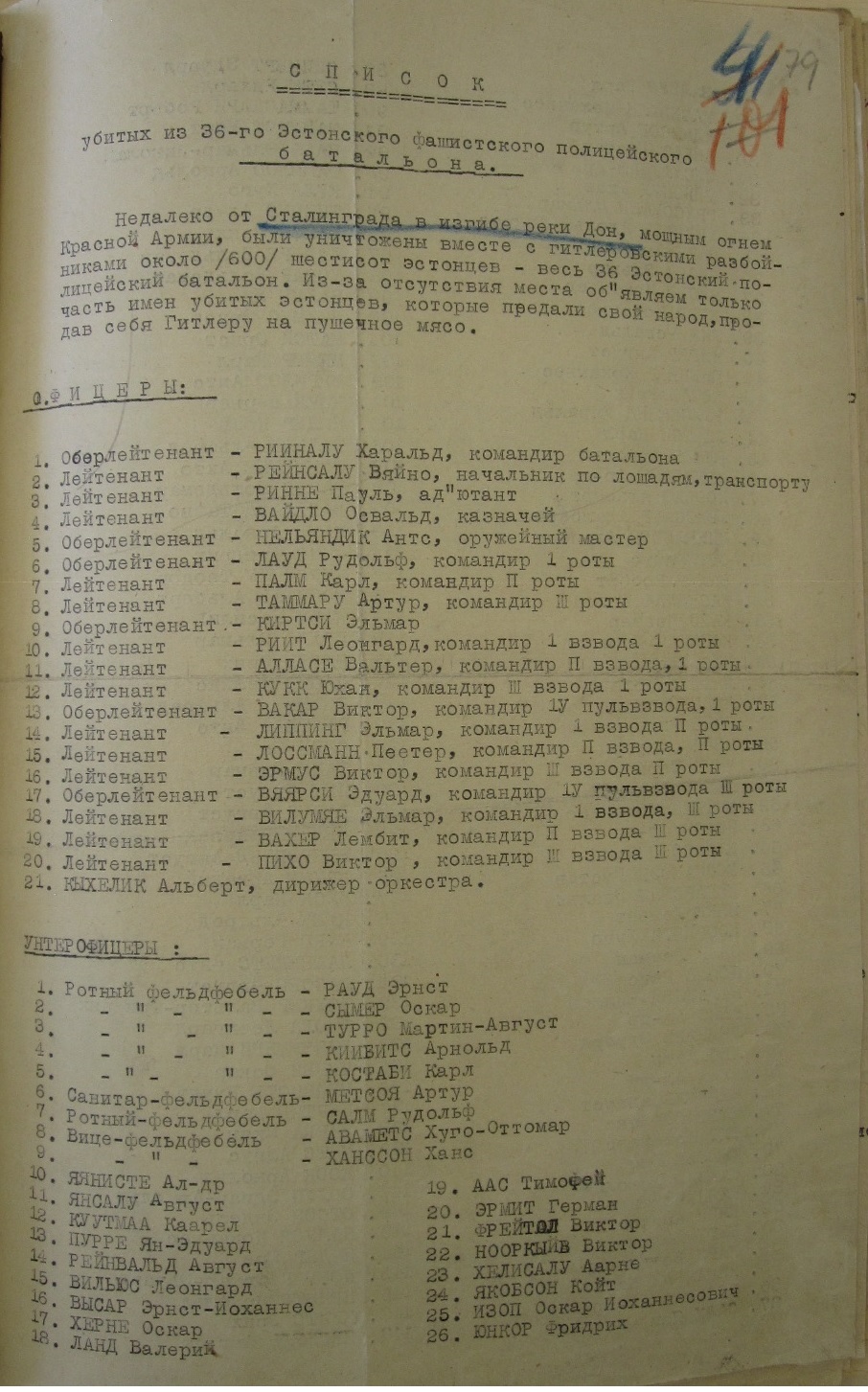Uscha selle lendlehe väidetavate 36. pati hukkunute nimedega küll juba postitas, aga panen siia kodumaises arhiivis näppu jäänud vene keelse alusteksti. Üks-ühele sama nimekiri.freiwilliger kirjutas: ...Seega, peaks suurema osa nimesid saama kätte sellelt lendlehelt...
