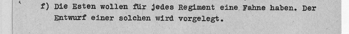 Kindralinspektor Johannes Soodla on lippude teema tõstatanud 13.06.1944 toimunud vestluses ja selle kohta on Bundesarchiv'is olemas ka dokument. Eestlased soovivad igale rügemendile lippu ning dokumendi juurde on lisatud ka näidis lipust, milline see võiks välja näha.