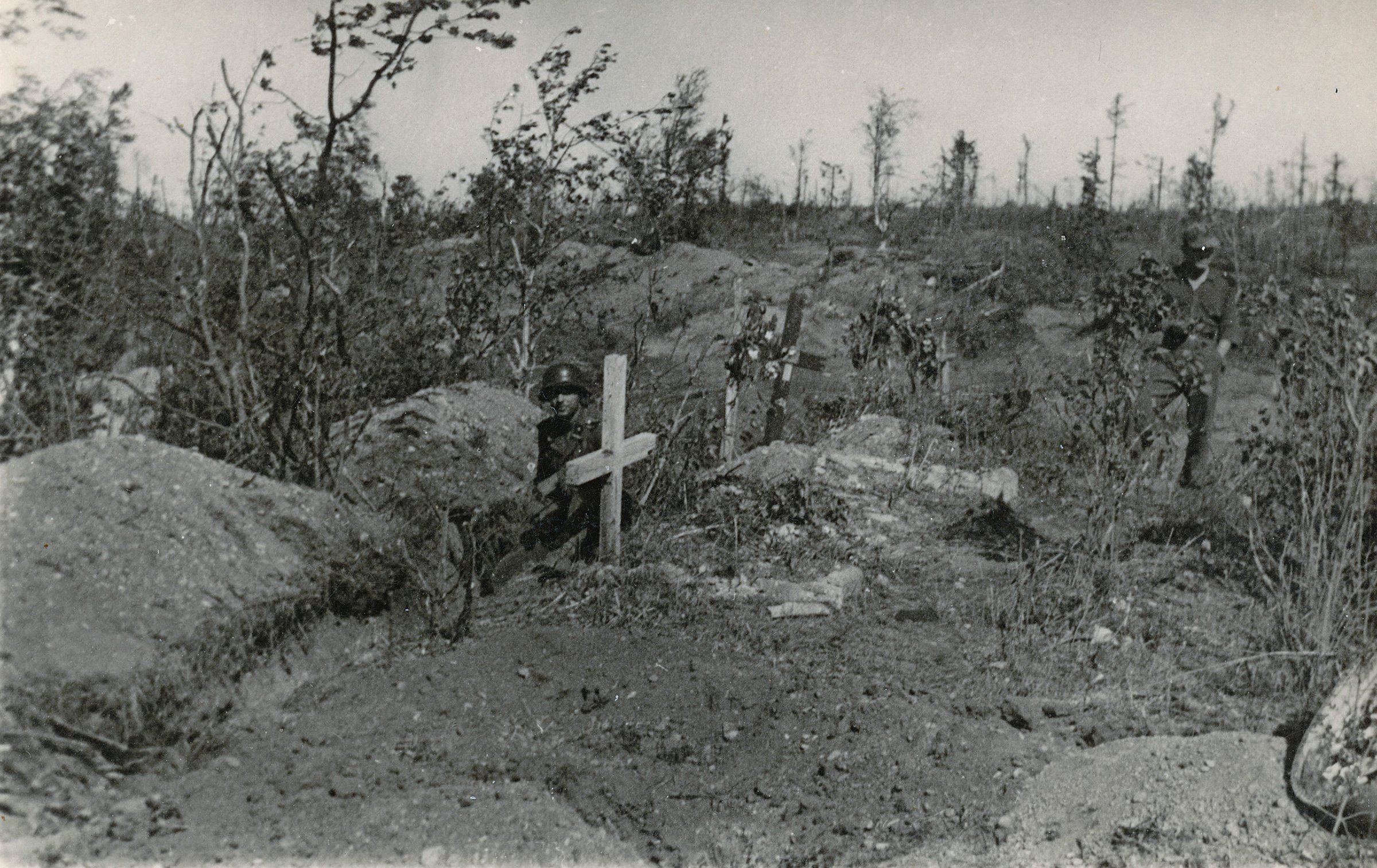 Neid fotosid on varem raamatutes ja ka siin foorumis näidatud aga postitan sellegipoolest ka siia, sest haakub hästi teemaga. Ülesvõtted on tehtud Tornimäest lõunasse jääval Vaivara kalmistul ja fotodel on 47. rügemendi I pataljoni (ilmselt) 2. kompanii mehed, sest Ilo Hindreus, kellele need fotod kuulusid oli 2. kompanii koosseisus.