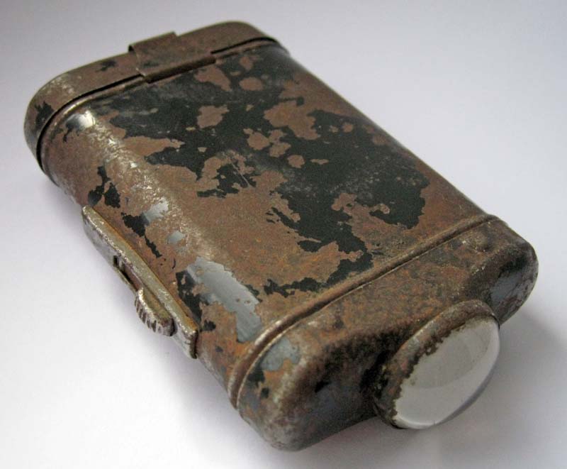 Kas seda võib ka taskulambiks lugeda? Pärit kooritud pinnase mahapanekukoha piirdetraadilt üsna Tsernobili AEJ triibuliste korstnate lähedalt. Et tulin ära lennukiga, siis jäi ka see "suveniir" kotti. Ja kott,millega olin-tulin Tsernobilist, jäi minuga. Lamp ise sisaldas üht patareid 333 ja 2,5V pirni, taga vööleriputusklamber. Lülitamine käis kaane tihedamakskeeramisega, aga seal olid nad ammu tühjaks põlenud. Platsil seisis ka üks buldooseriga Dt 75, mille siis mõni autojuht käima pani kui enam maha panna ei olnud ruumi ja lükkas nagu oskas koomale. Lõpuks keegi eluvend lasi Nati omapead minema... Sest mõttetu oli kogu see vaev seal.