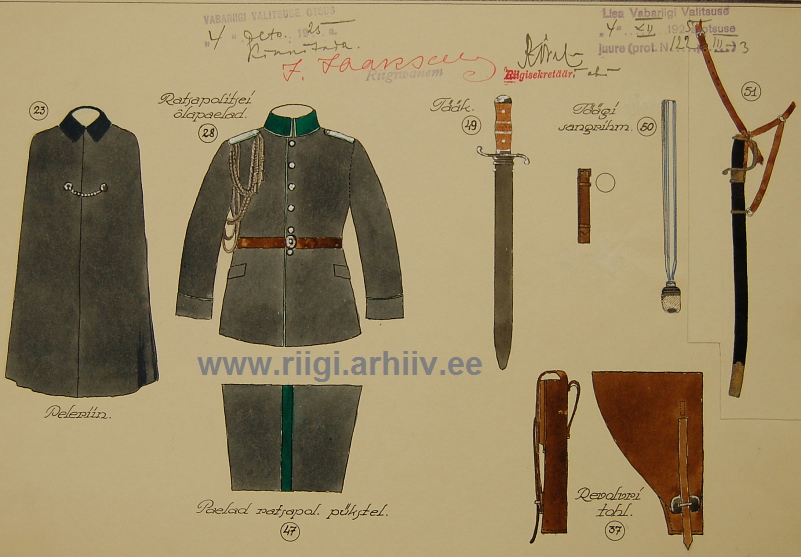 4. juuli 1933 a. Virumaa Teatajas kirjutatakse, et hiljuti olla kohtu- ja siseminister kirjutanud alla määrusele, millega politseinikud üle kogu riigi varustati kumminuiadega. Samuti esines minister vabariigi valitsuse ees ettepanekuga, et politsei vormikirjeldusest eemaldataks edaspidi tääk, mida nood senini olid kandnud.