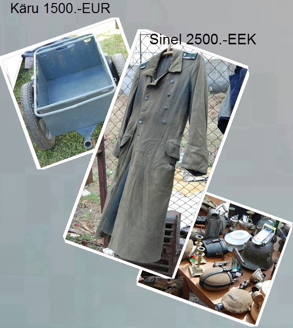 Kahekümne viie raha eest EV piirivalve algusaegade nokats ja kahe Jakobsoni eest vassistlike röövvallutajate 1942. aasta igitrendikast moekollektsioonist pärinev plekk-kaabu (värv pole küll originaal, kuid koor ise on see-eest kõva ja viisakas seisukorras).