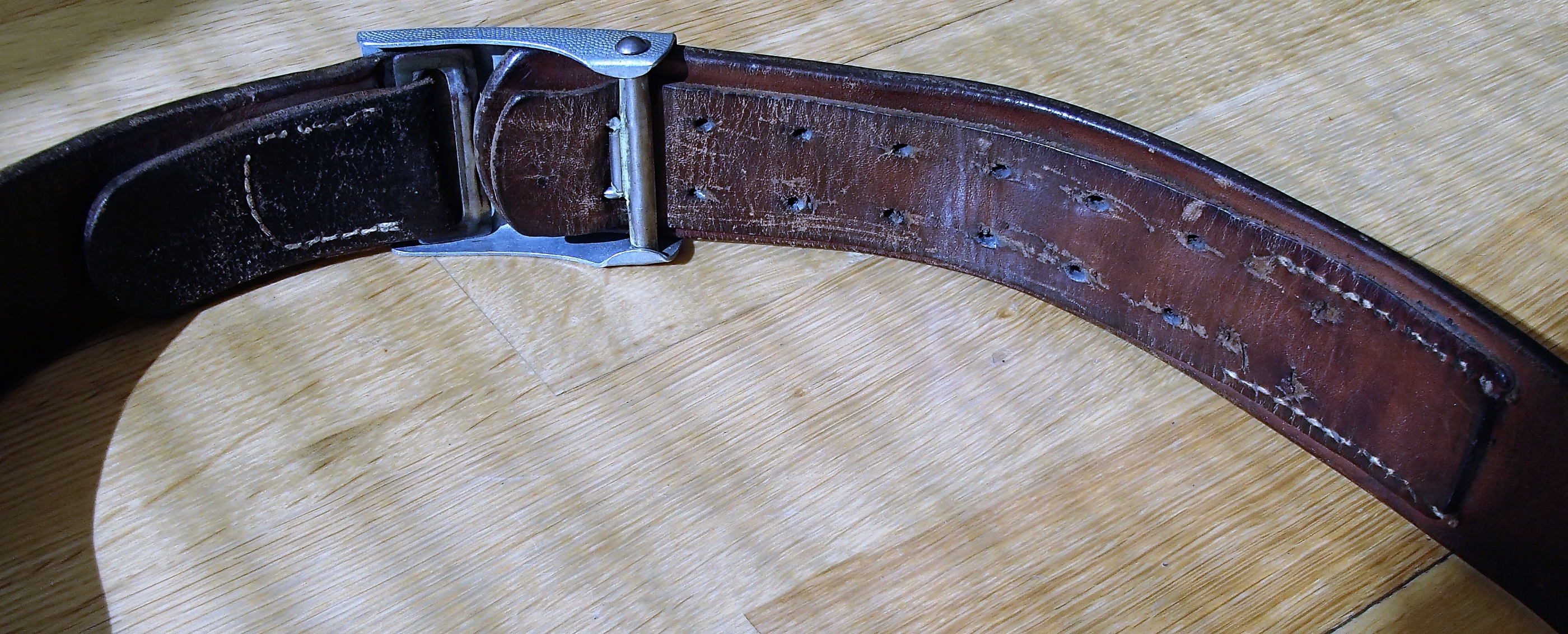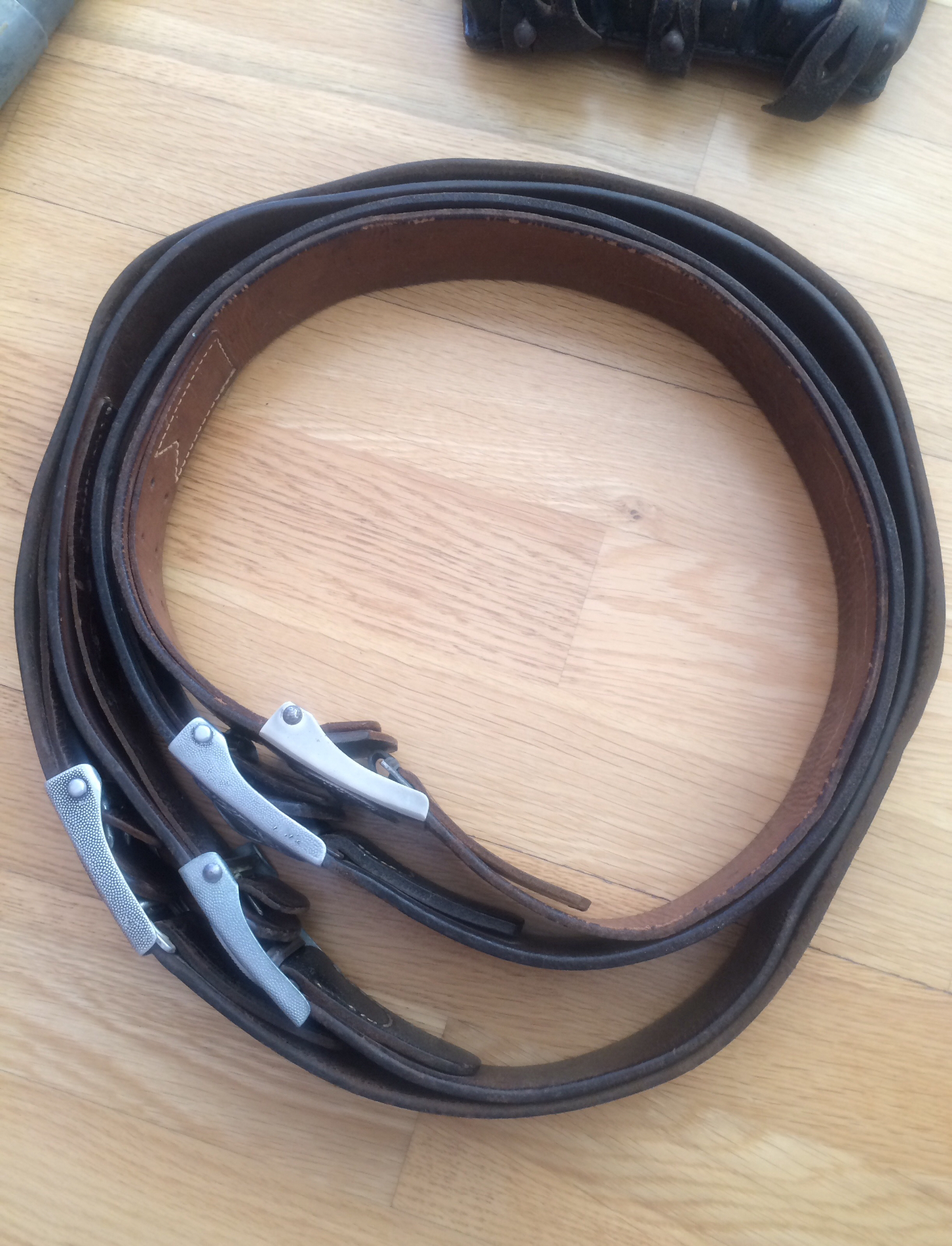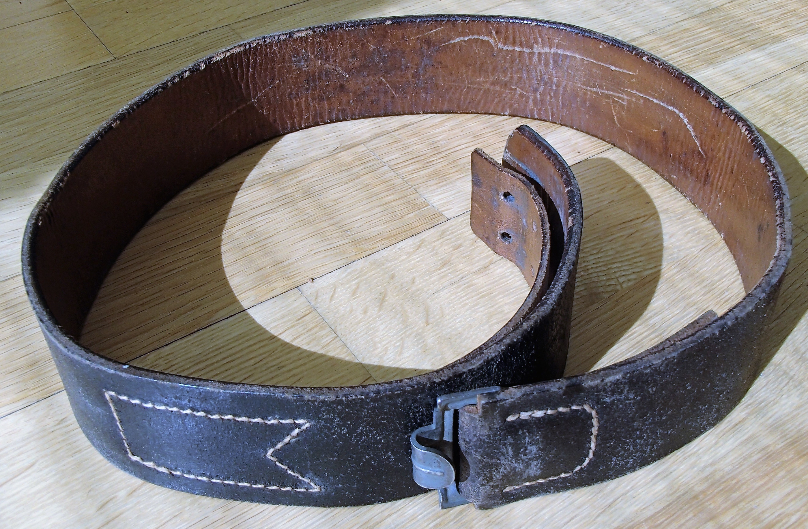 85cm "komplekt", need pole ilmselt koos olnud, rihm markeeritud 1942a suht tutikas oma 5-6mm paks vormihoidev isend(superseisukord), pannal varajane markeeritud sõjaveteran.