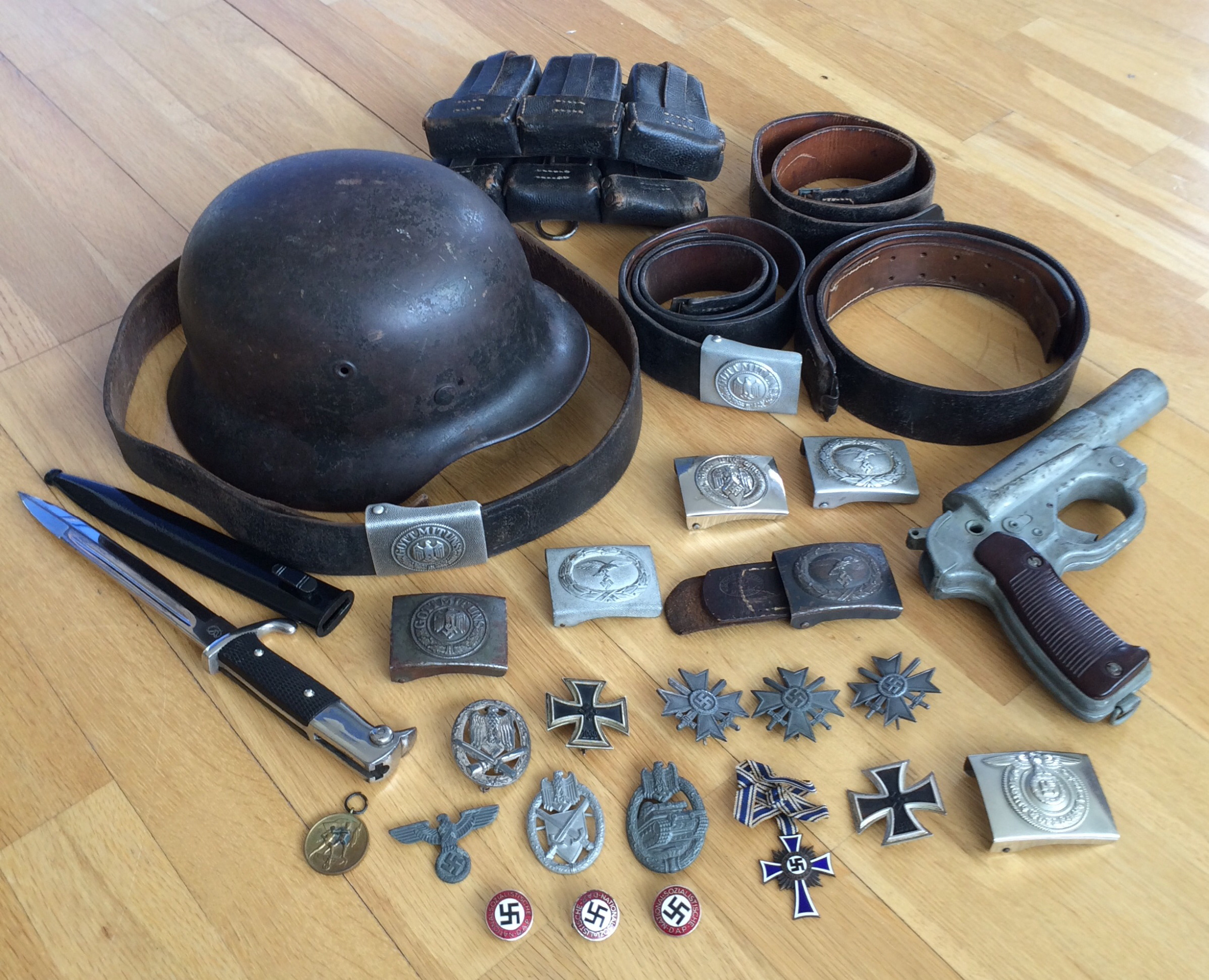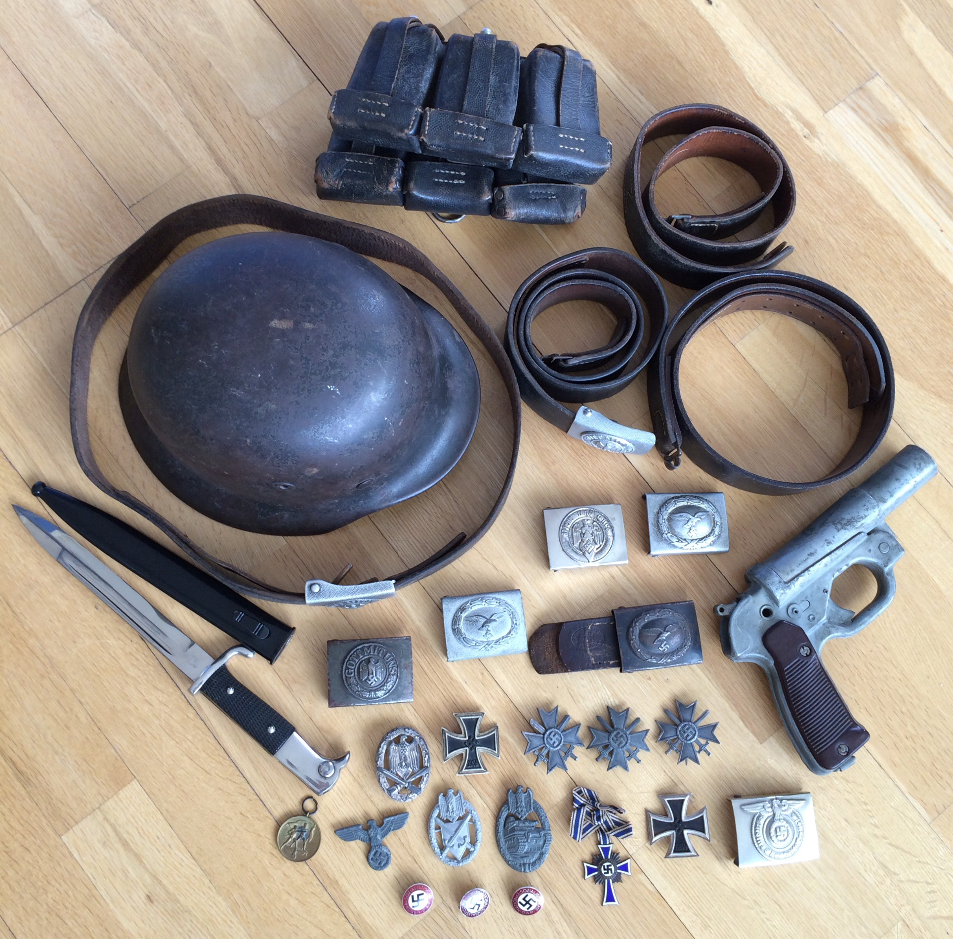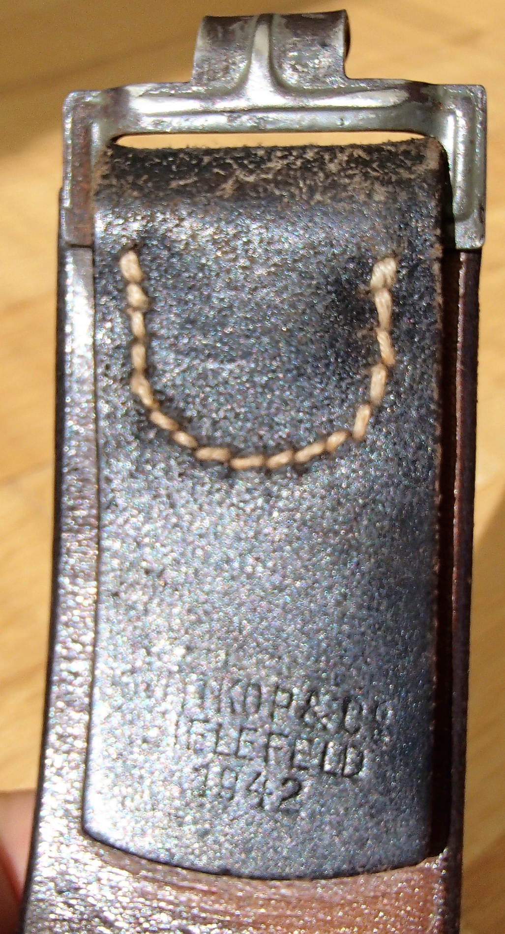 85cm "komplekt", need pole ilmselt koos olnud, rihm markeeritud 1942a suht tutikas oma 5-6mm paks vormihoidev isend(superseisukord), pannal varajane markeeritud sõjaveteran.