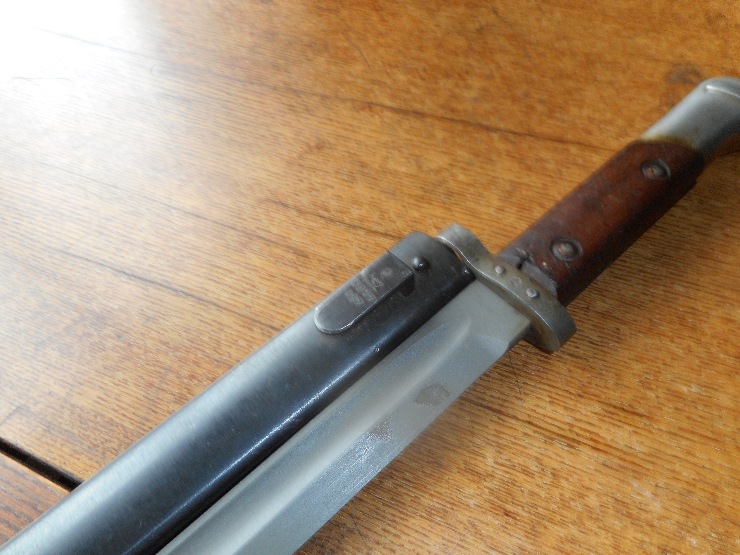 Hiljuti sain ühe korraliku butcheri,millel ainult kaks markeeringut,kui neist ühte markeeringuks võib lugeda.Nimelt üks asub käepideme tagaosas,mis tavaliselt,aga teine (RK)käekaitse all tera pool.Aastaarvu ega muud ei ole.Millega võiks tegu olla?