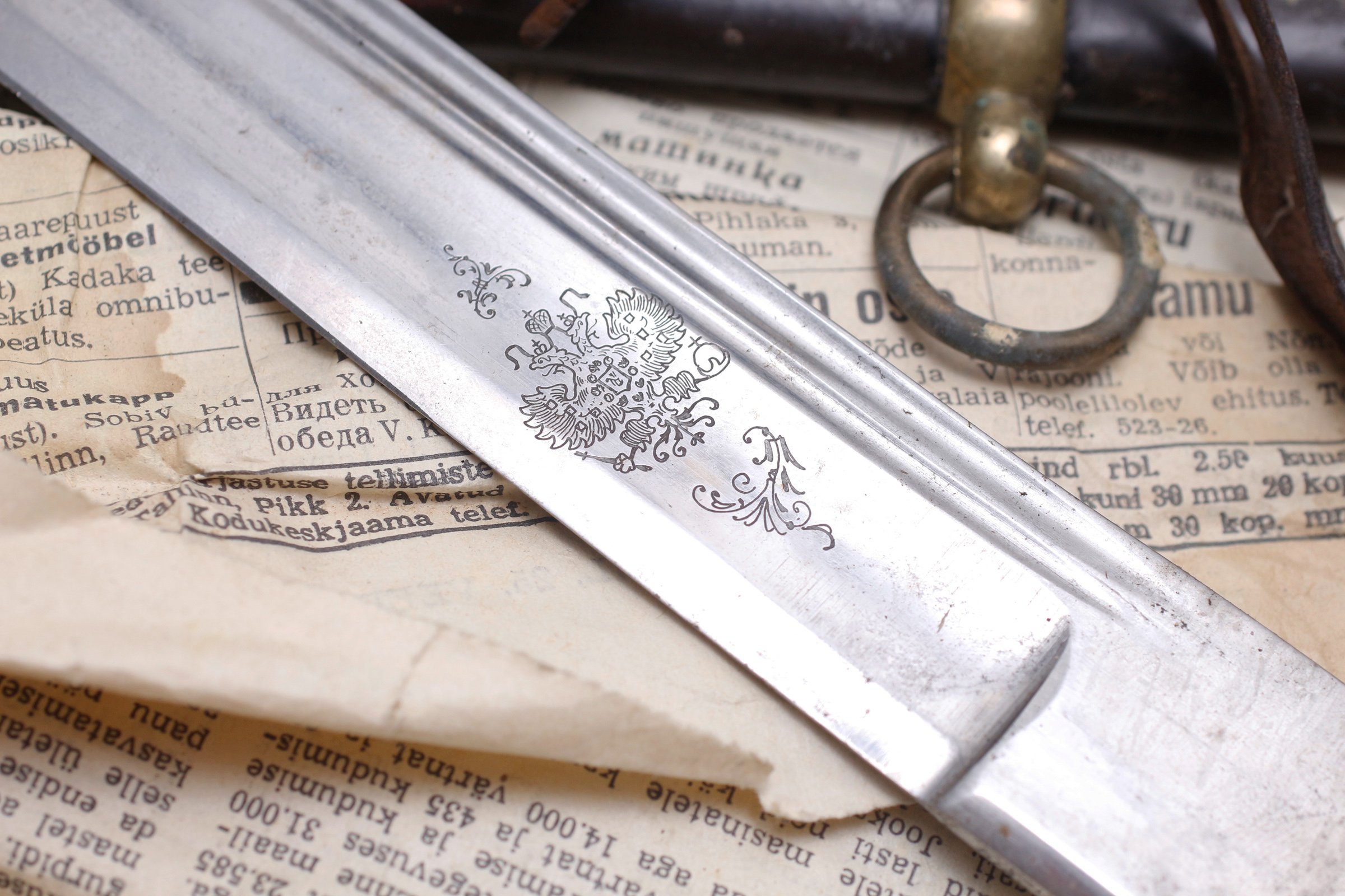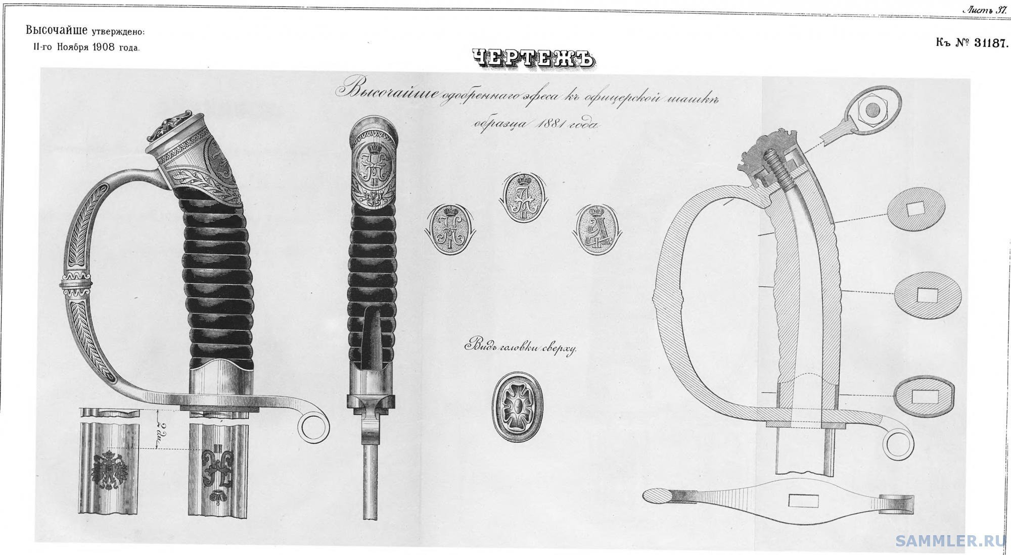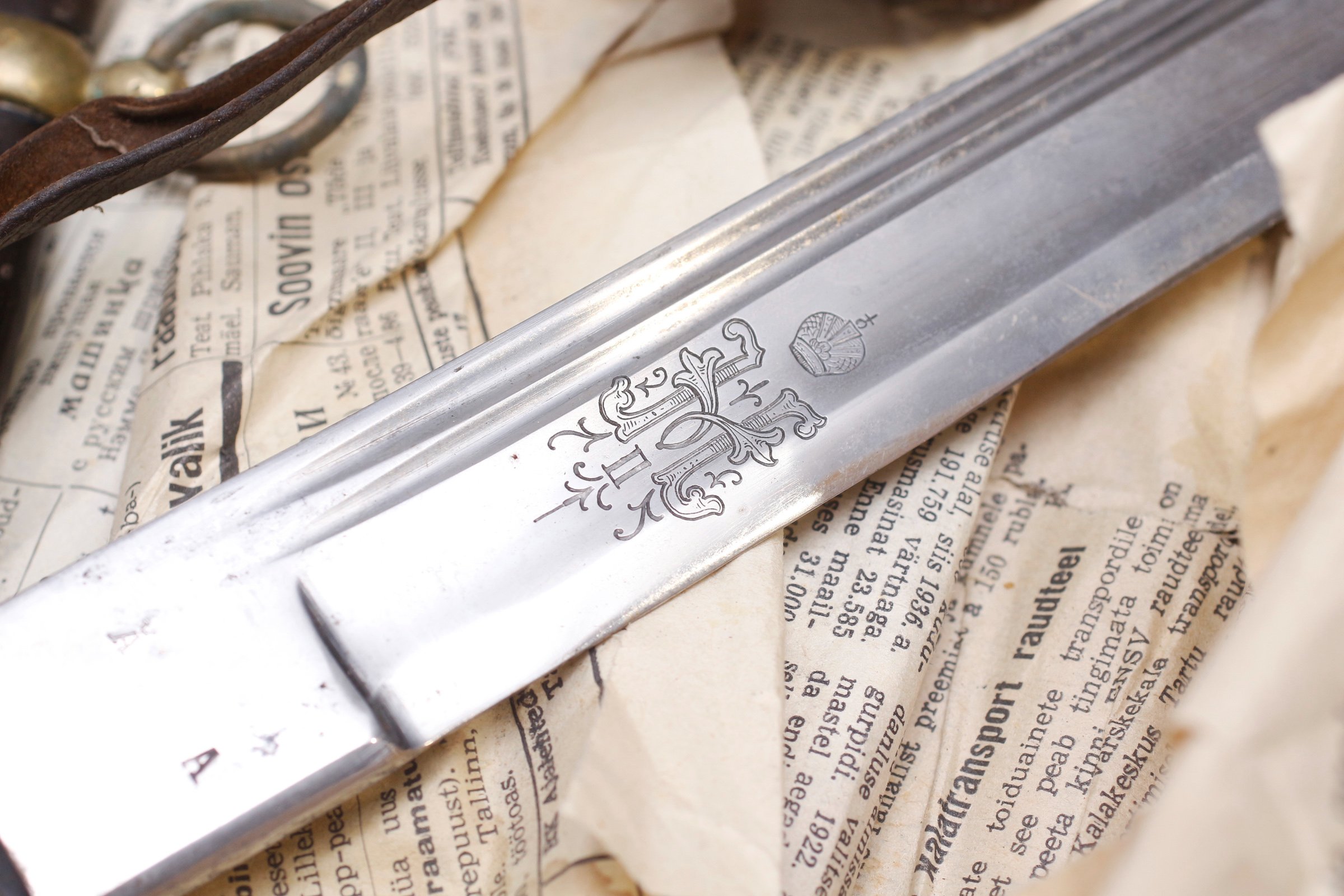 Detaili tagaküljel on viimase vene imperaatori Nikolai II monogramm - nagu see pidigi olema tsaariarmee lõpuperioodi ohvitserimõõgal - ning mõned teemaleheküljed tagasi olen ma selle mõõga joonise siia juba postitanud