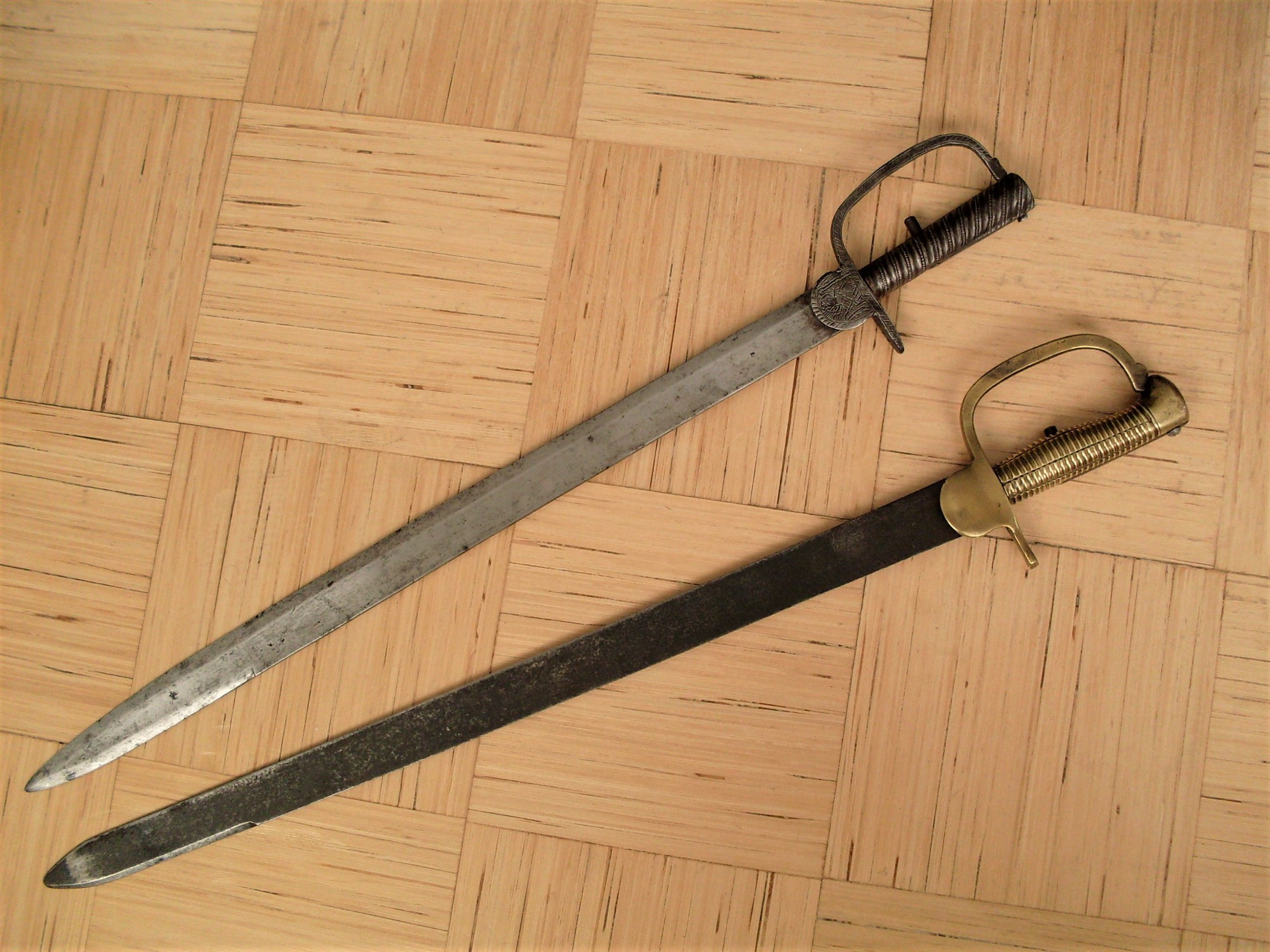 Midagi veel mehisemat - 2 x eksemplari nn Baker sword bayonet - elik esimese briti armees standardiseeritud sõjapüssi (mis oli Baker´i ränilukuga püss) tarbeks aretatud mõõktäägid.