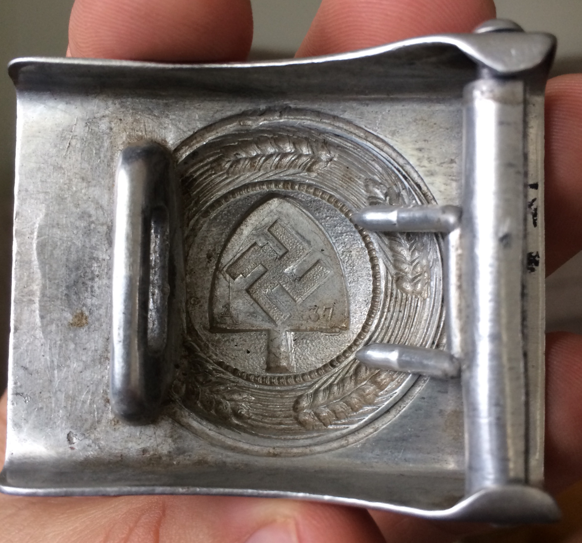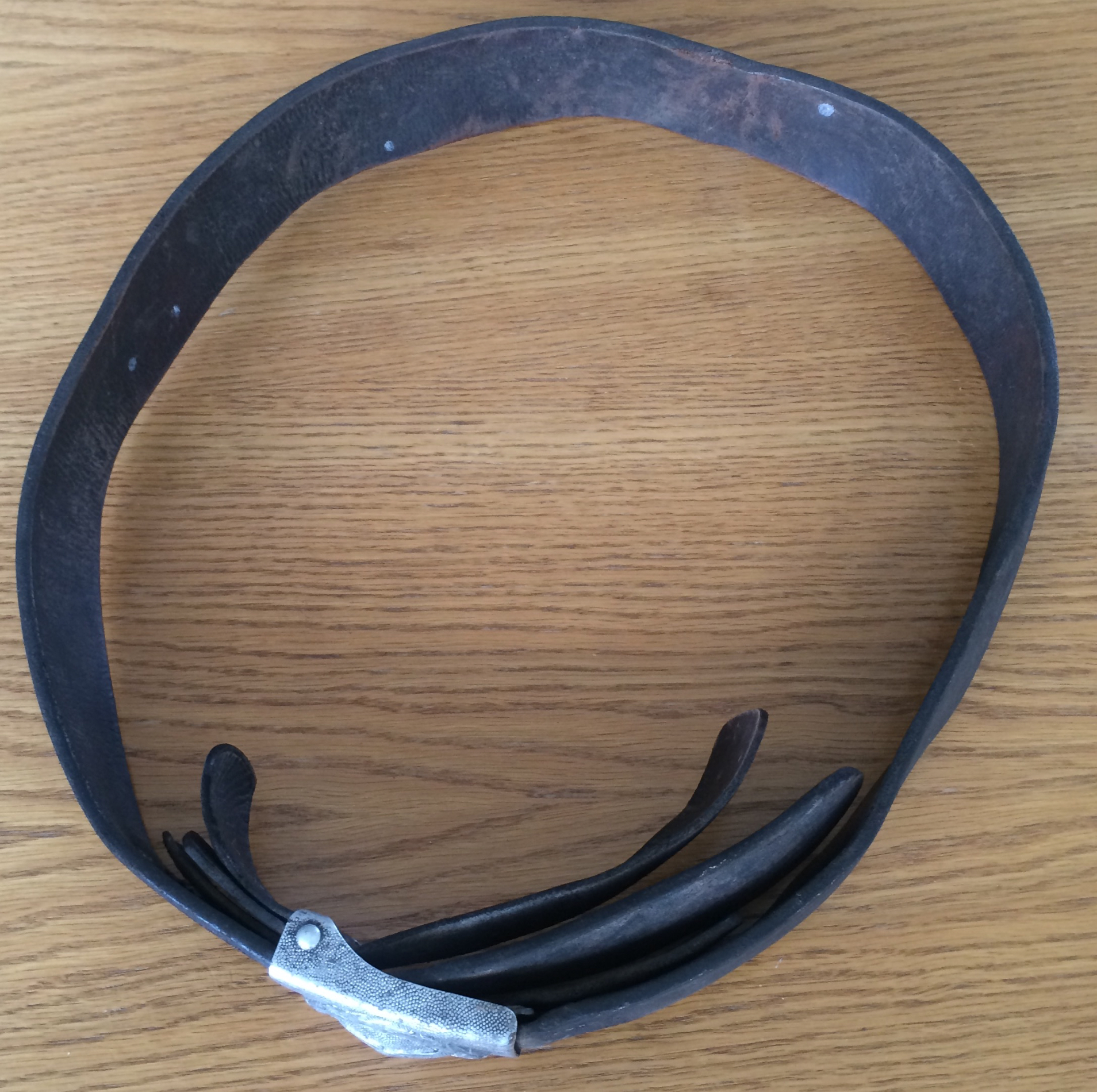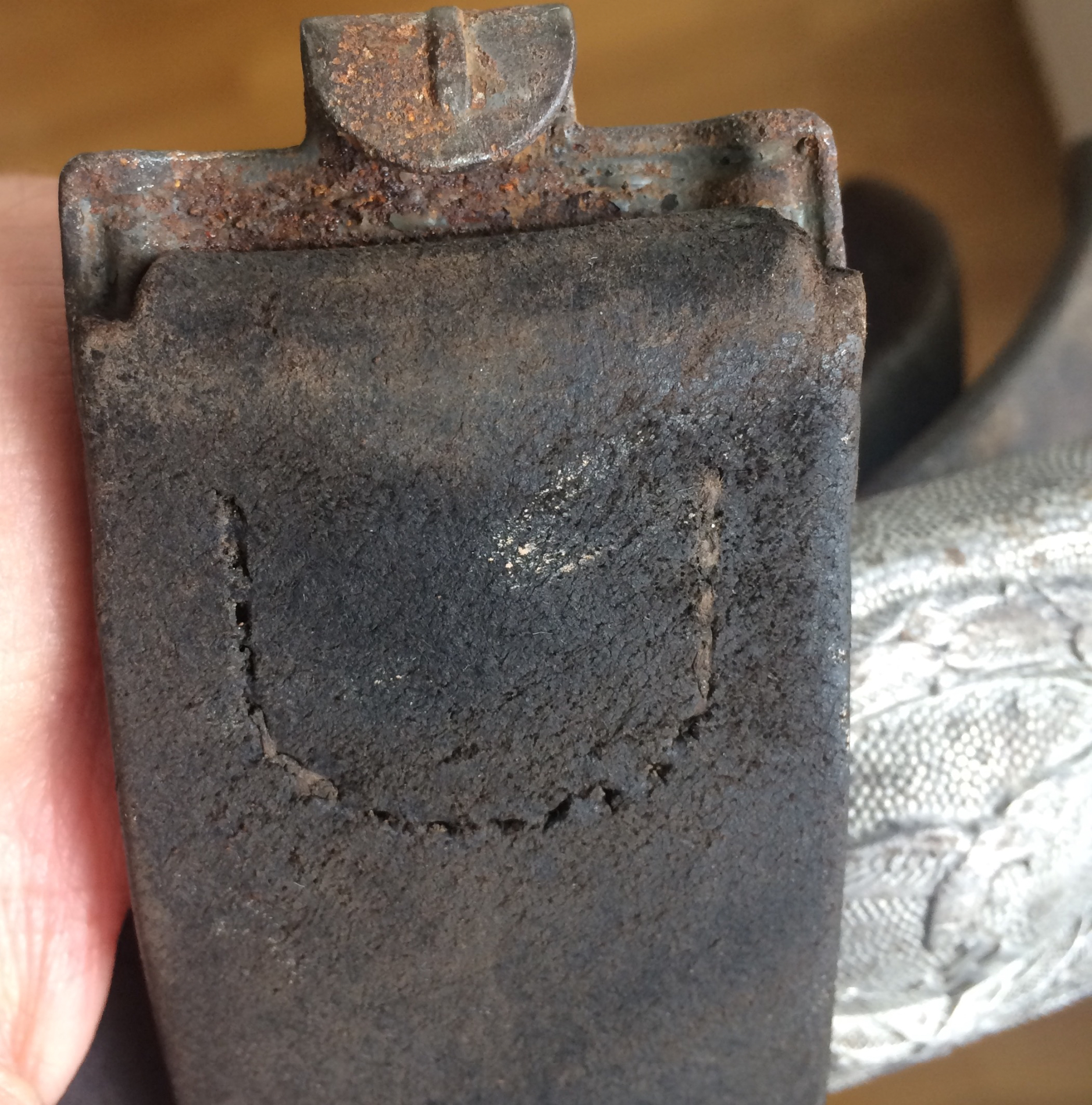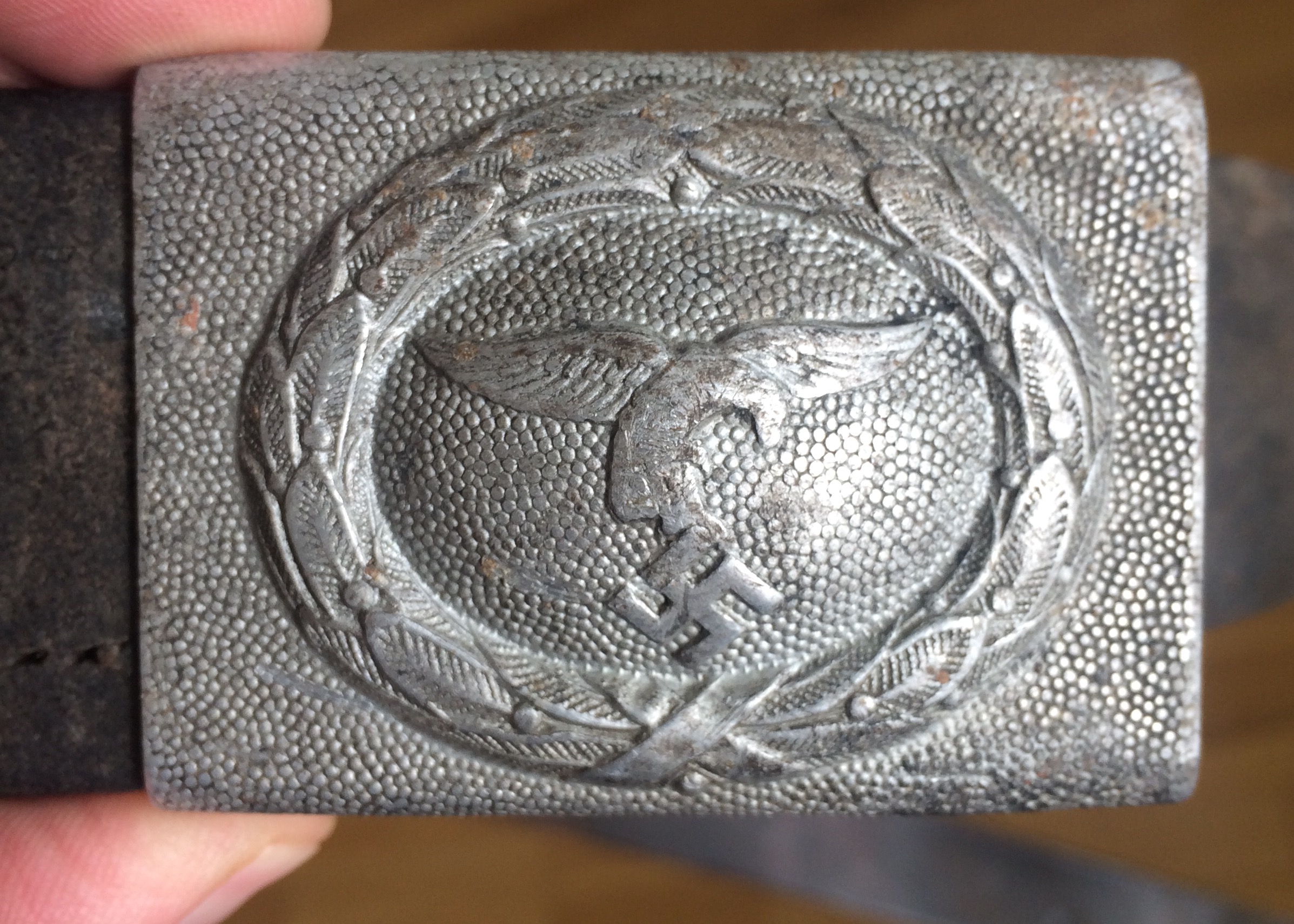 Esimese tüübi LW komplekt, nii nagu leitud omas mahlas. Rihm 110cm, õmblused mädad. Rihm kõva aga täiesti terve ja tundub, et saaks õige hooldusega elule tagasi. Pandla naha õmblused terved, LBA märgistusega ja 1936a markeering. Haruldane, 200.-