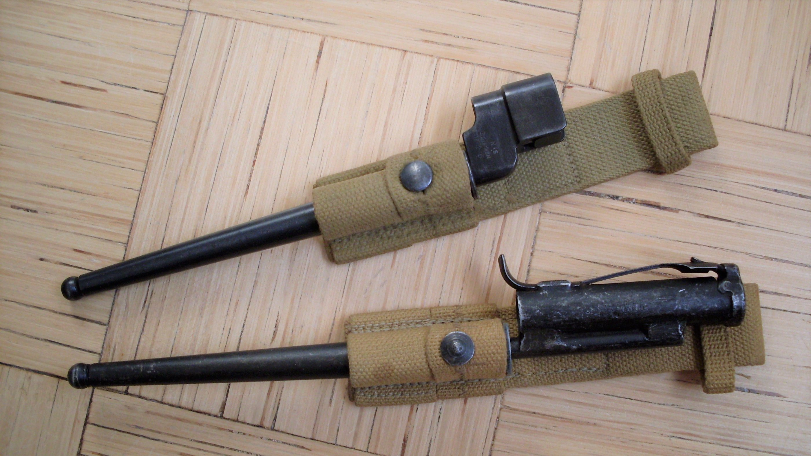 all -- Haruldane tubular-tüüpi torketääk briti püstolkuulipildujale STEN SMG MkII (kasutatav ka pistodana), toodetud alat 1942.a. Socket´i vedrul on tootjakirje B&J.C.Ltd (sama kirje ähmaselt ka socket´i peal). Komplektis on kitsale tupele sobitatud rihmakinnitus, mille templil äratuntav aastaarv 1943.