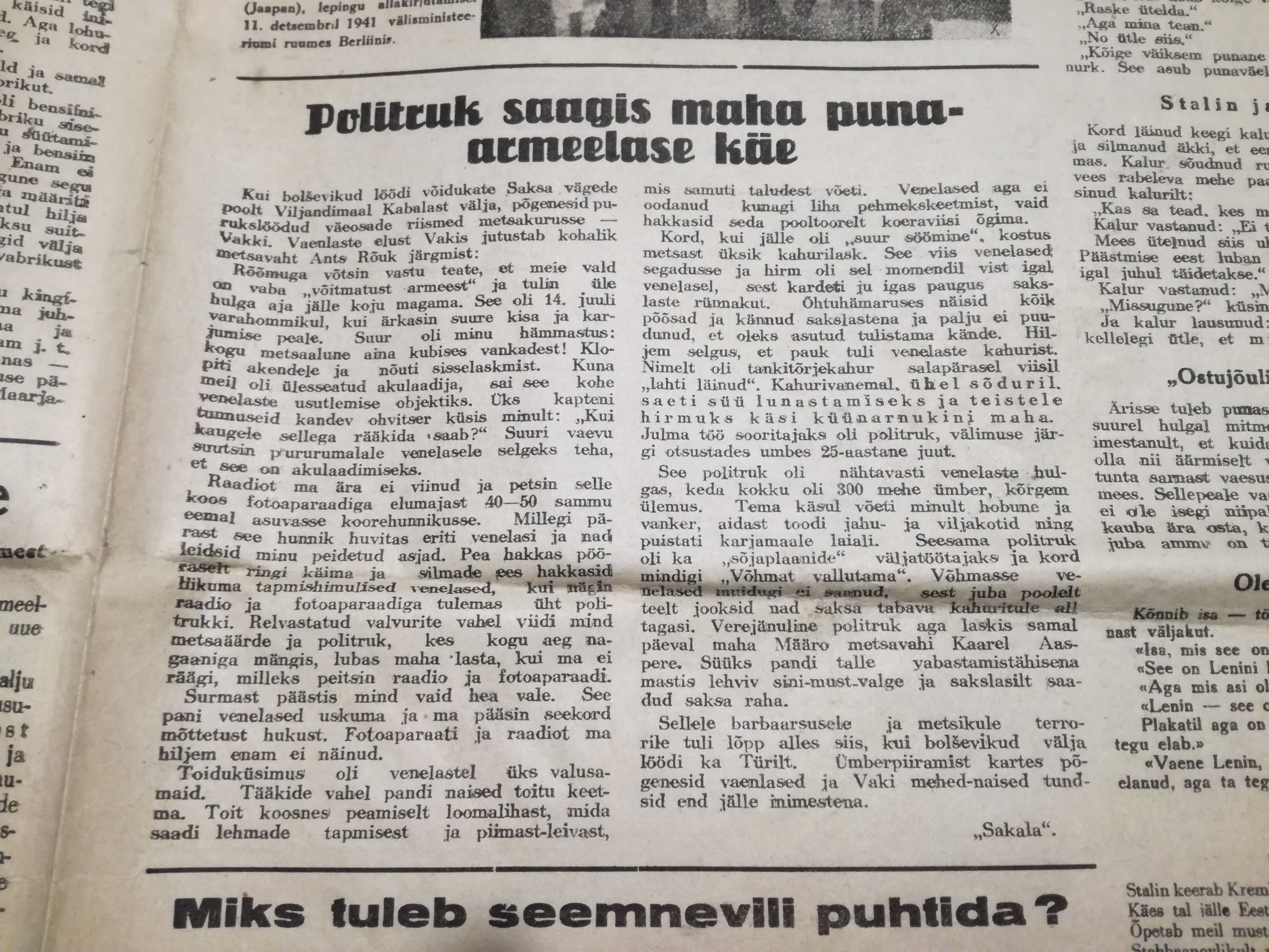 Tuletab meelde üht vahvat filmi "Kägu" või "Kukuška" Seal Soome legionär aheldati kaljusse.