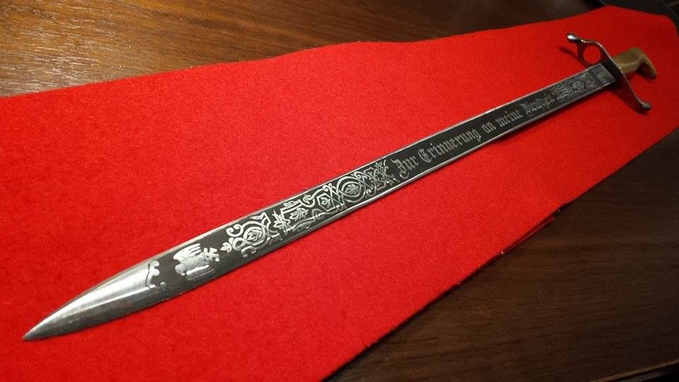 (3) tegemist võis olla kellegi allohvitseri n-ö erakorras tellitud paraadtäägiga - nonde tera võis olla sile ja ilma sooneta (see seletaks ka vahetüki "uusust"). Haakristiga graveering on jällegi nonsenss