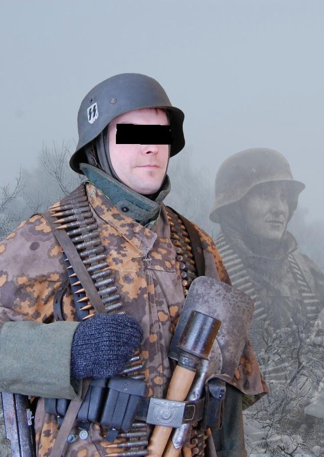 Sain ühe tuttava härjapõlvlase nõusse, kes paari pilsneri eest nõustus fashistliku anastaja vormi selga tõmbama ja fotograafile poseerima.