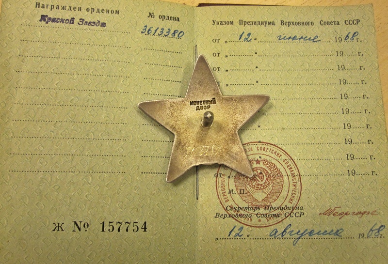 Punatäht 1 480 422, sõjaaegne "Gvardija", numbrita medal "Lahinguliste teenete eest" jne.