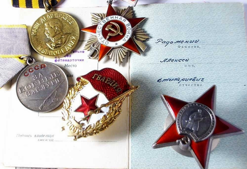 Kaardiväekapten Aleksei Radomski komplekt. Väga huvitav varane rippuv Isamaasõja II klassi orden ja Punatäht taas samast tuttavast sarjast 1480 ***.