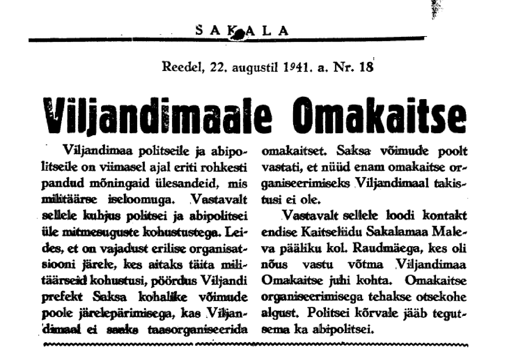 Paar väljavõtet Otepää teatajatest - esimene artikkel ilmus 02.08.1941 ja teine, mis puudutab Tartu ja Tartumaa abipolitsei moodustamist 20.09.1941