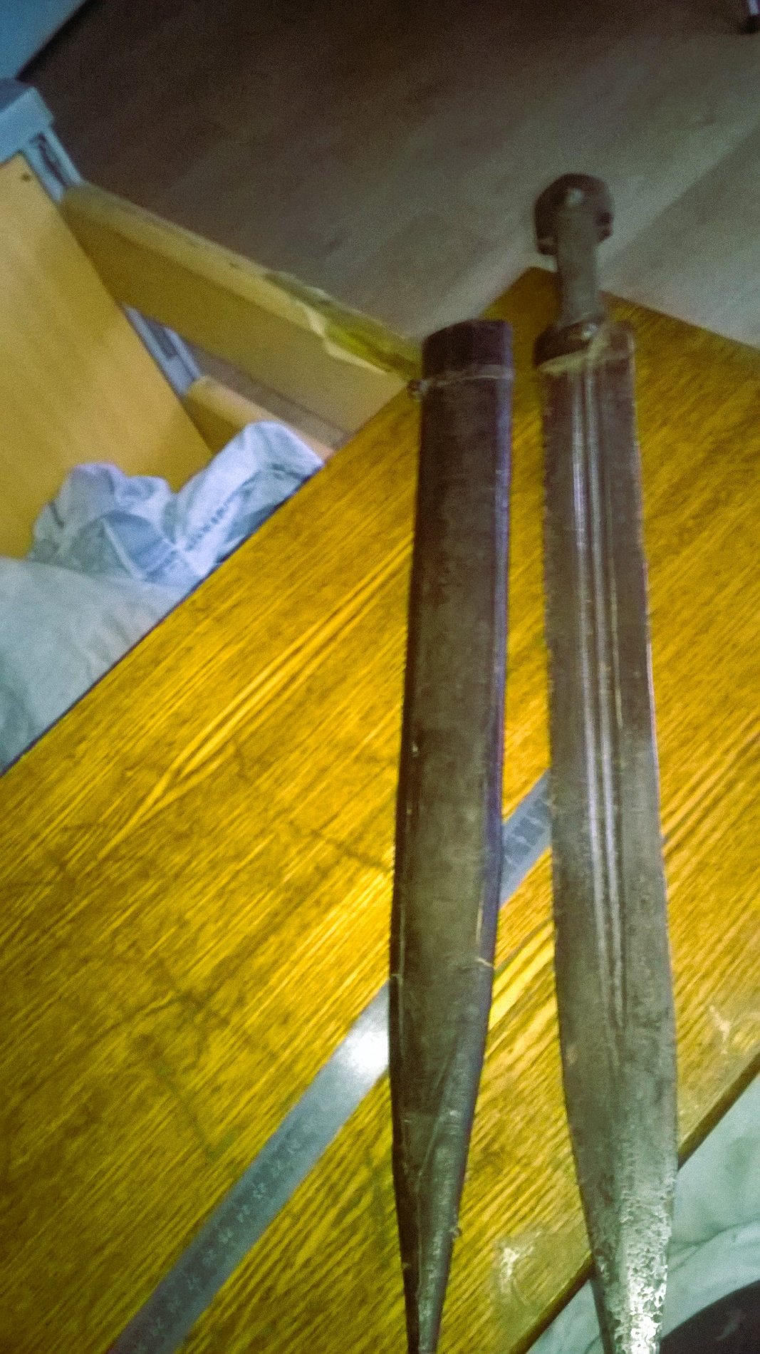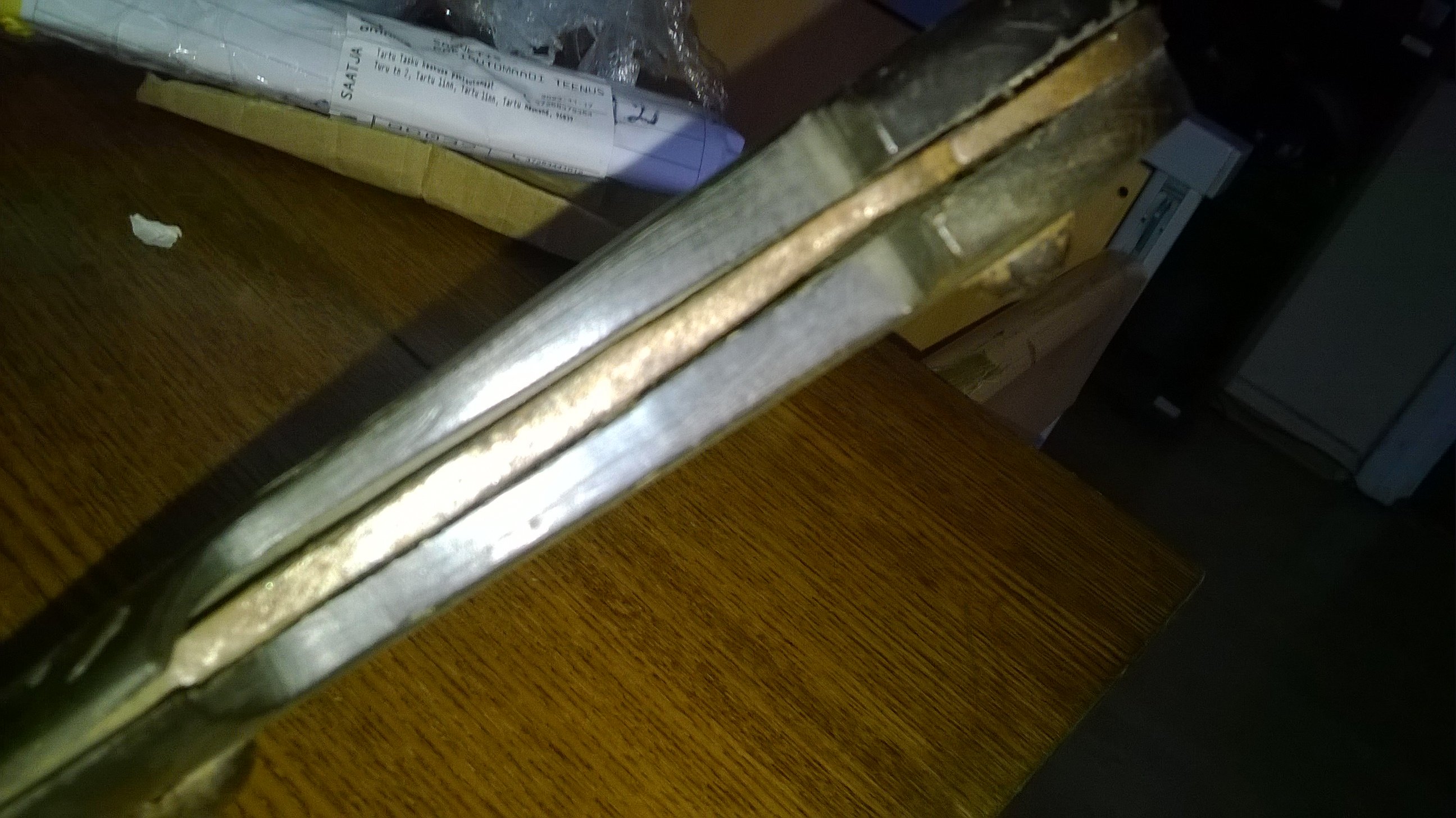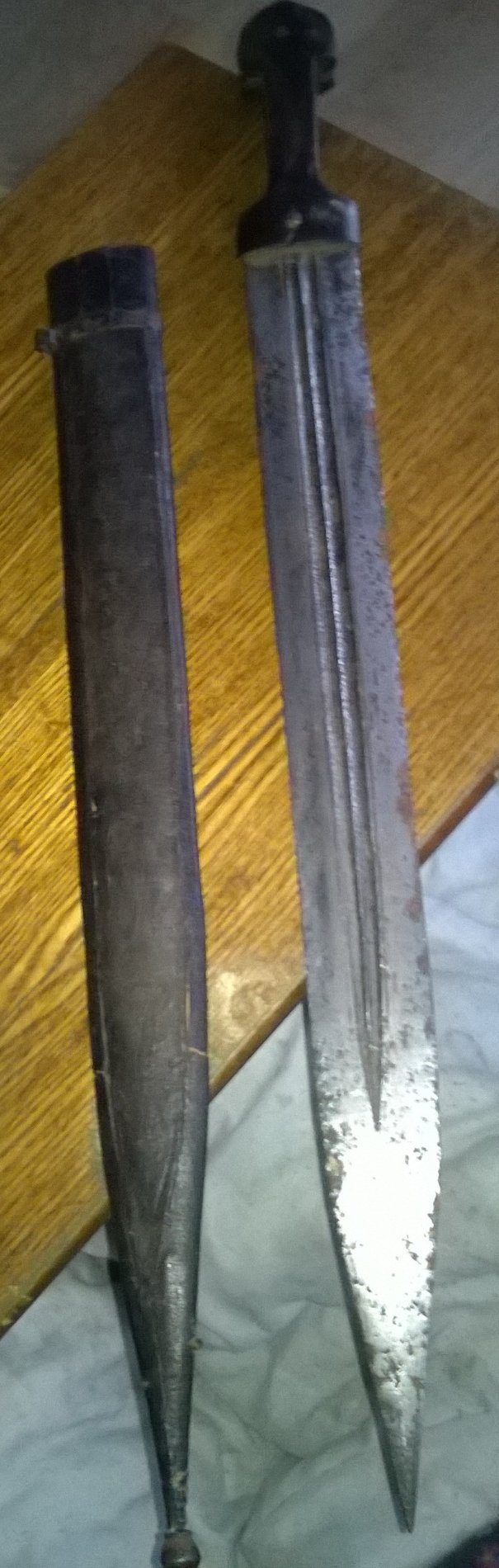 Käepide on luust ja küllaltki prostalt tehtud, võimalik, et keegi kunagi on kas taastanud kiirkorras või parandanud? Käepideme metallosa geomeetria ei ühti luu osa geomeetriaga mitmetes kohtades.