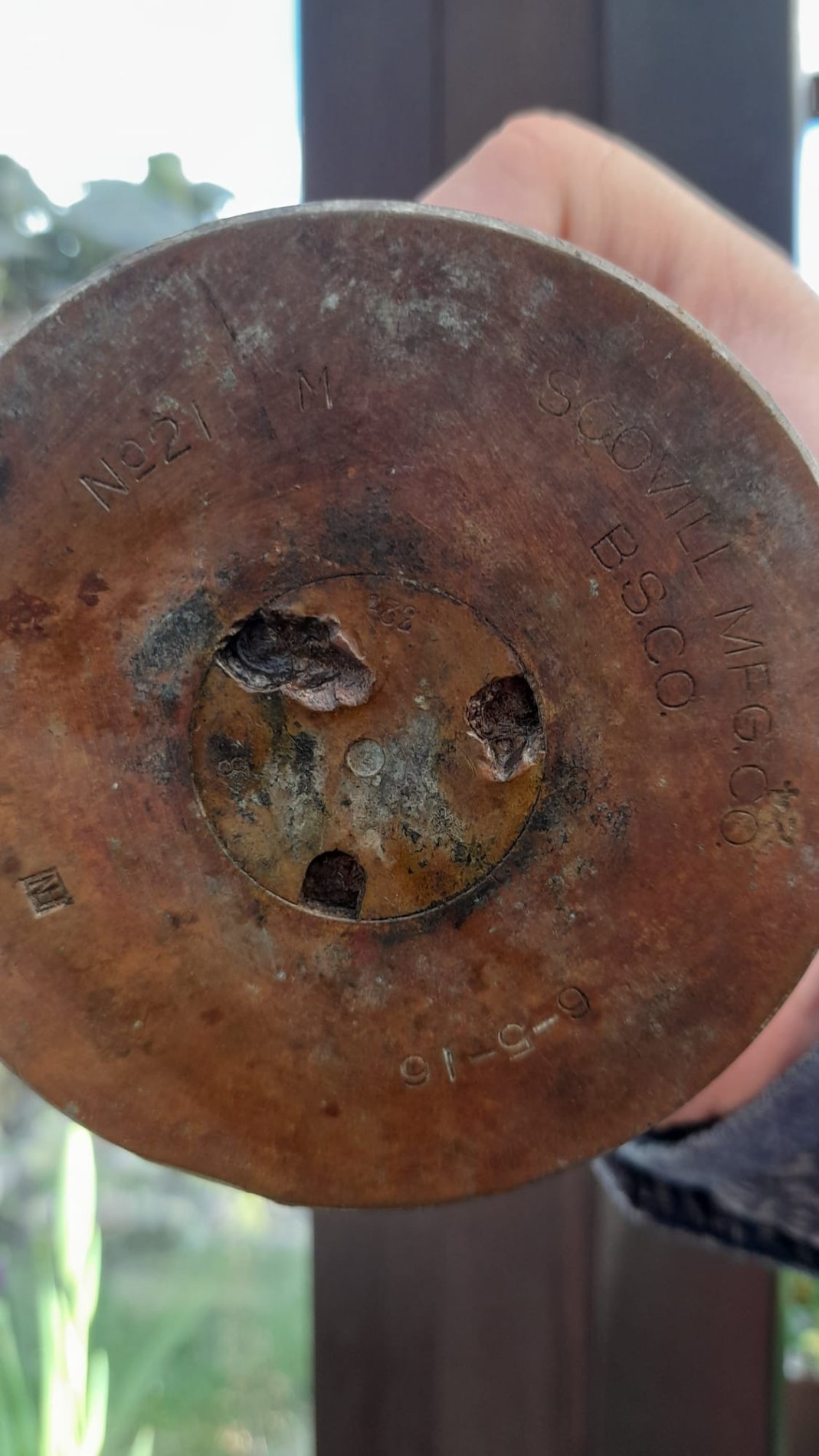 See on meie oludes vist väga haruldane kaliiber, kas - 18 naelane (18-pounder)The Scovill Company was established in 1802 as a button manufacturer and is still in business today. Scovill was an early industrial American innovator, adapting armory manufacturing processes to mass-produce a variety of consumer goods including buttons, daguerreotype mats, medals, coins, and transportation tokens. Connecticut factories supplied the war with thousands of pounds of ammunition. One such factory was the Scovill Manufacturing Co. in Waterbury, Connecticut which created brass shells and time fuses during the war. Scovill Manufacturing Co. was originally a brass button manufacturer like many of the factories in Waterbury. Scovill started to diversify their production before the Civil War into creating daguerreotype plates for photographers as well as lamps and lanterns. During the Spanish-American War, Scovill acquired government contracts to produce cartridge shells and time fuses for military use which it would be contracted to manufacture again with the start of the First World War.