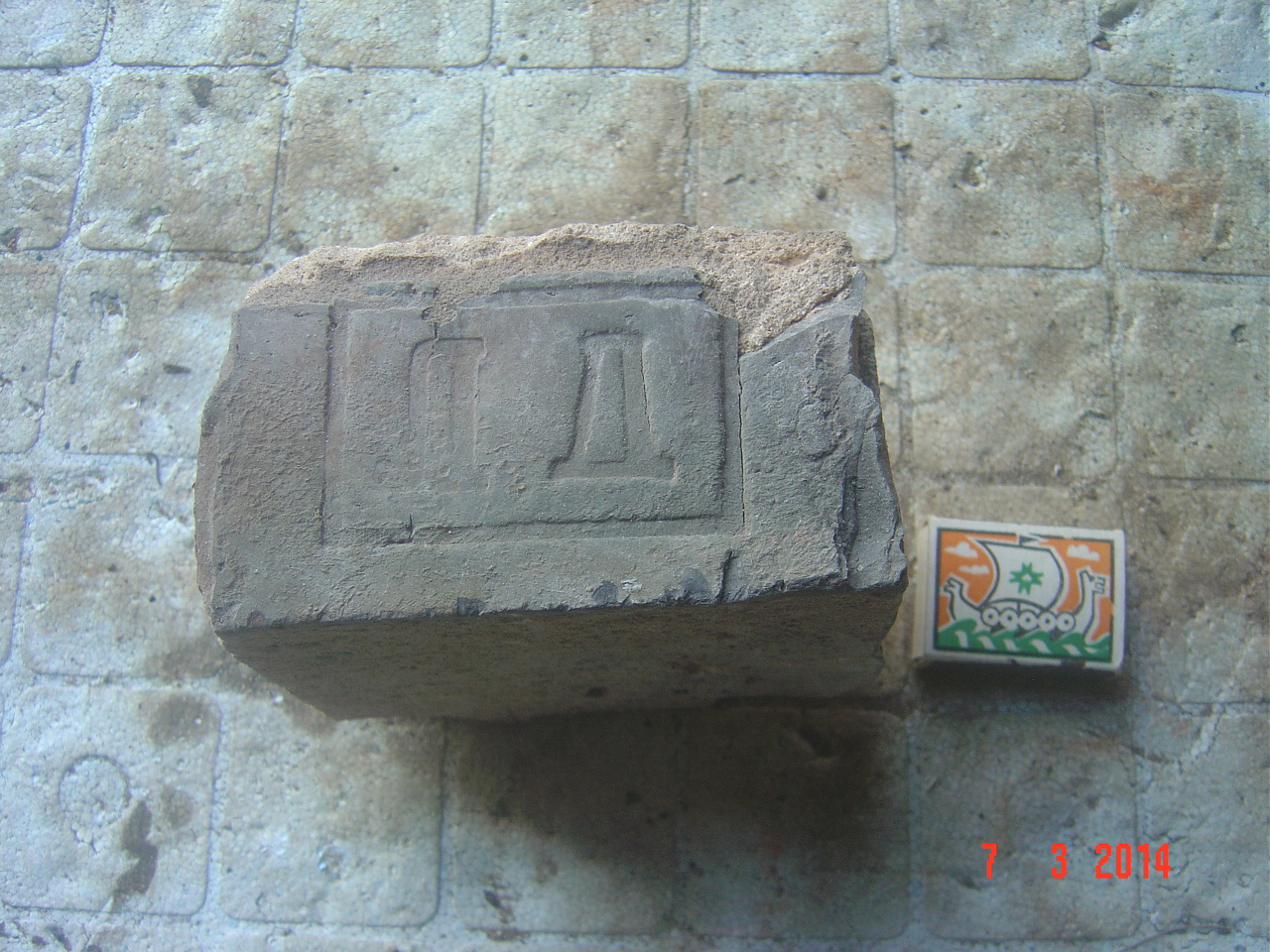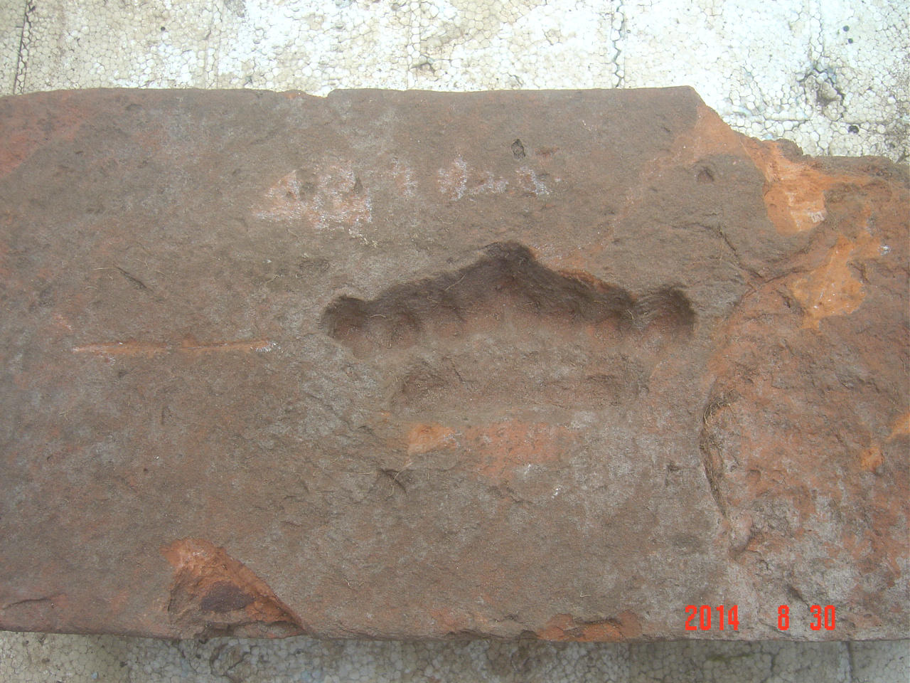 I found this cracked brick in Sigulda region where formerly there were manor buildings. The brick was a part of an old greenhouse' brick wall but maybe formerly it served for a different purpose.