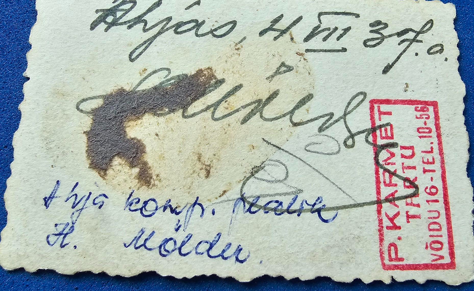 Foto Ahja kompanii pealik H. Mölderist 1937 aastal. Näha aspirantuuri märki ning lindiliist.