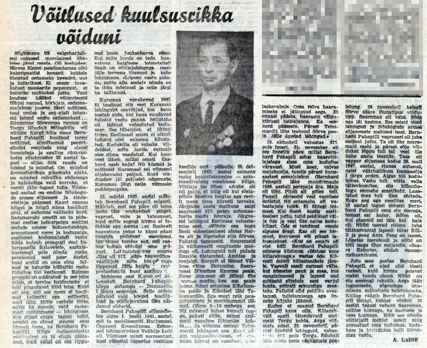 Ajalehe väljavõte on mäletamist mööda pärit kuuekümnendatest aastatest ja temast kirjutati tollastes ajalehtedes rohkemgi.