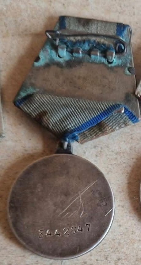 Lahinguteenete medal näeb mõlemalt poolt vaabse õudne välja - mis on karjuvas vastuolus värskelt sirava muareelindiga // no ei usu, et selline lint saab olla 80a vana