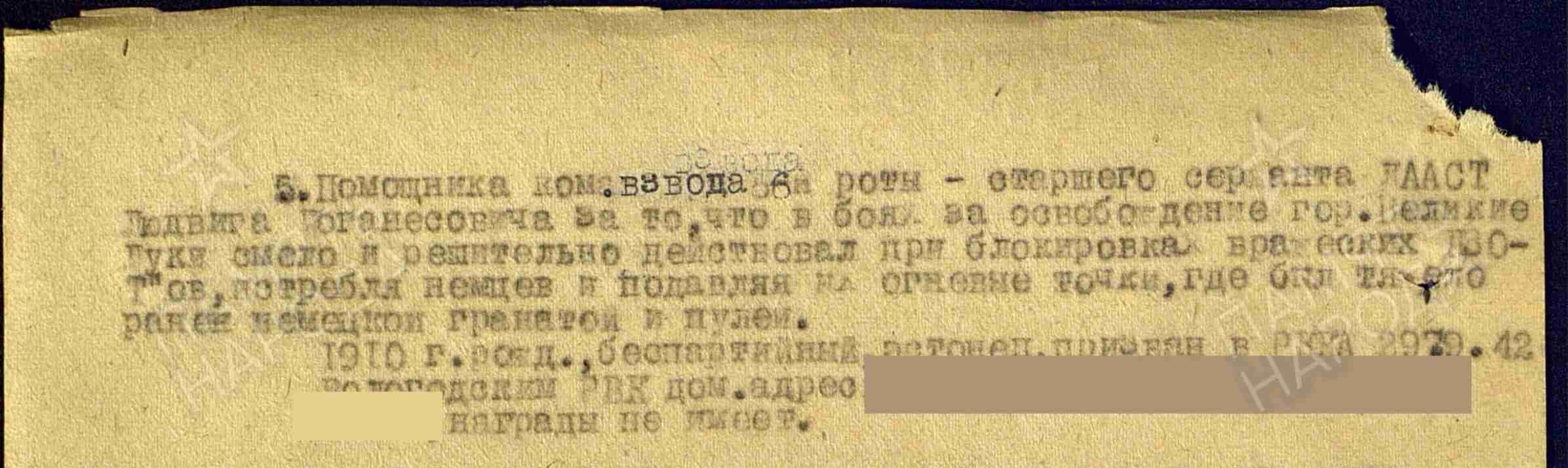 Eesti Sõjamuuseumis oli selline vapruse medal 733058, kuulunud Ludvig Laast nimelisele. Sai Velikije Luki Lahingus raskelt haavata.
