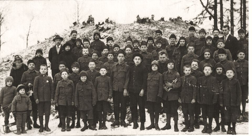 FB kasutaja Lembit Twerdianski perekonna albumist: "Äsjaasutatud hoolekandekooli kasvandikud Koluveres 1920. Seljas osaliselt Inglismaalt saadud mundrikuued."