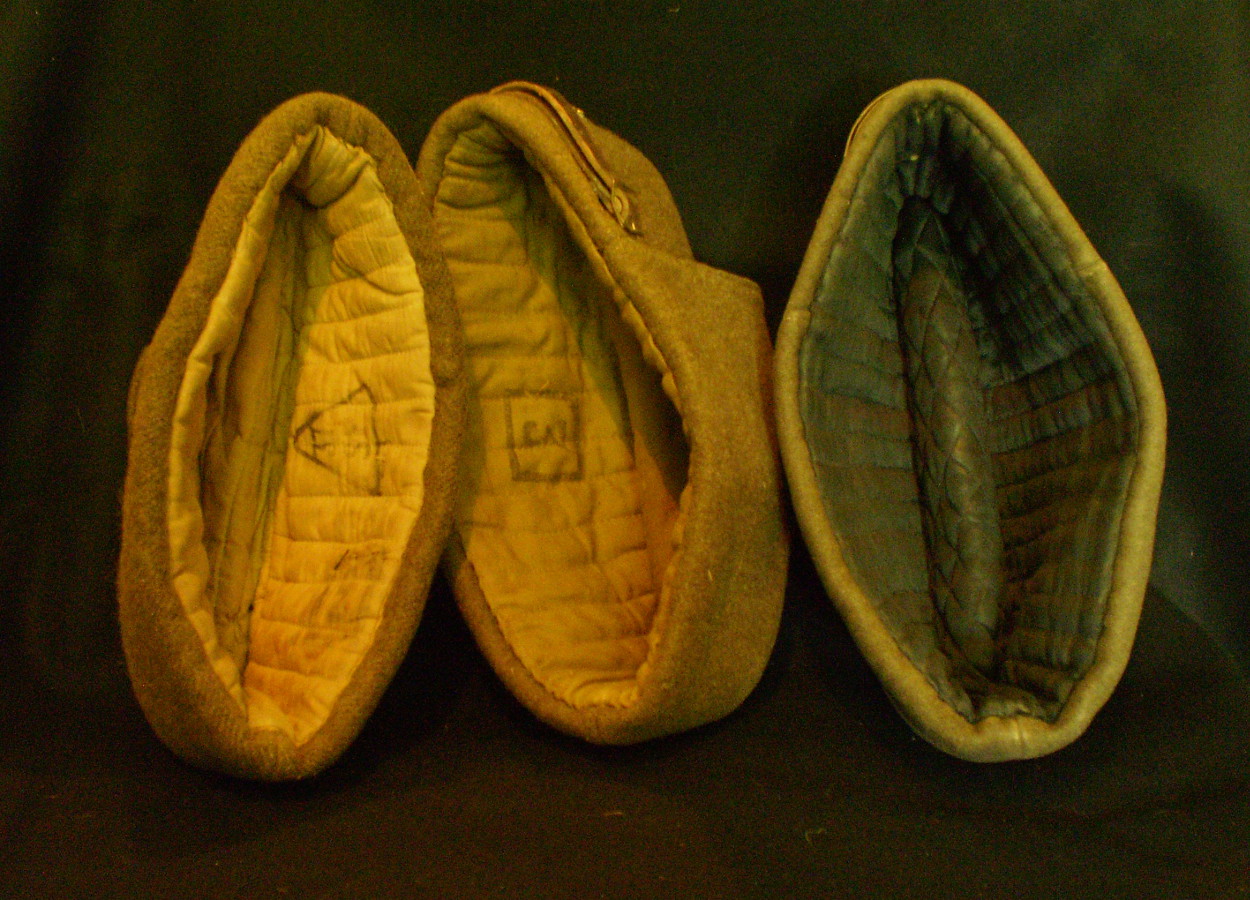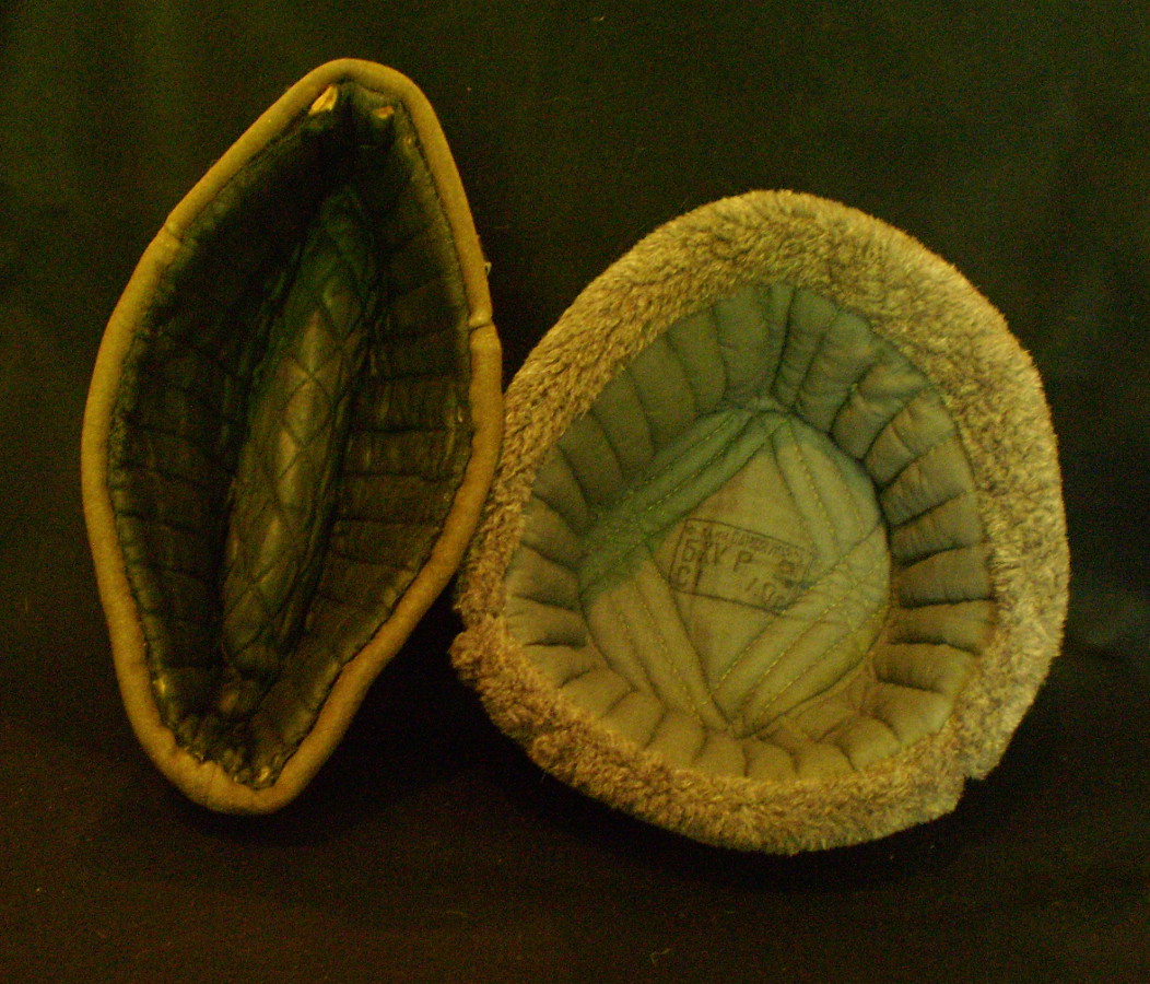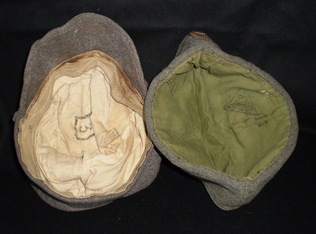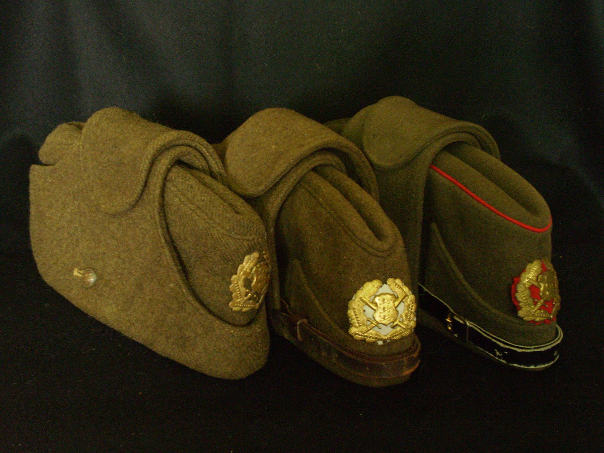 Vasakul ss sinelist tehtud vene ushanka stiilis talvemüts. Ära harutatud kotka tiiva õmblus on vasakul klapil näha. Paremal tüüpiline määrustikupärane talvemüts jänesenahst. Aasta paistab olevat sees 1942.
