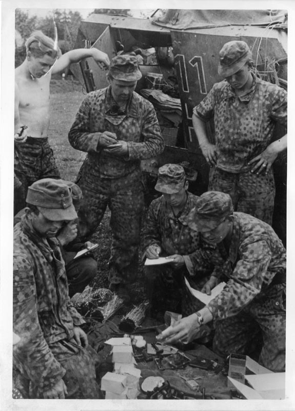 В официальном порядке чехлы для касок и кепи из ткани с рисунком Erbsenmuster не шили.