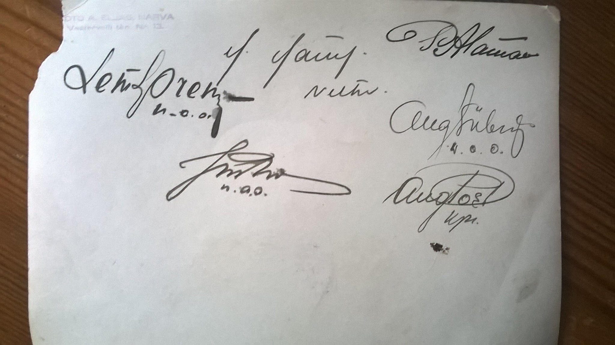 - I Jalaväerügemendi Üleajateenijate Kogu juhatus: sekretär nooremveebel H. Laikve, seersandid abiesimees J. Alaväli, esimees J. Paeväli, laekahoidja A. Siivik.