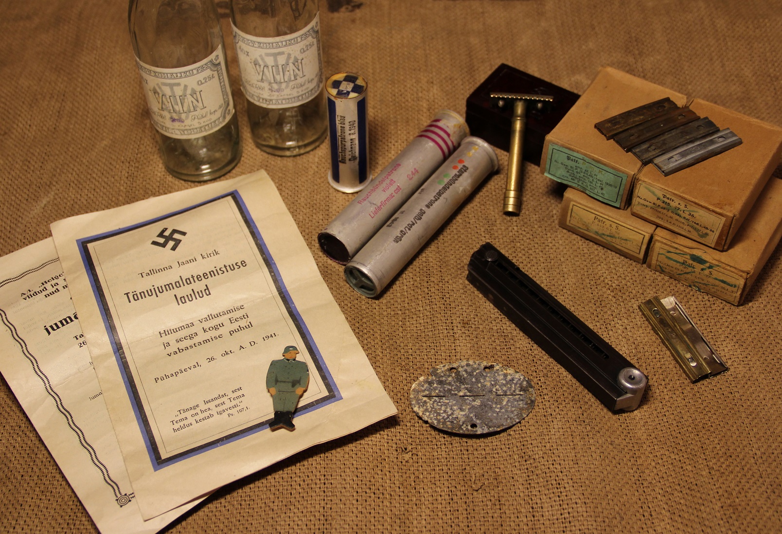 PALUN PAKKUDA EW JA TSAARI-VENE MÄRKE , MEDALEID , VORMIELEMENTE , POSTKAARTE , FOTOSID, DOKUMENTE JA MUUD.
