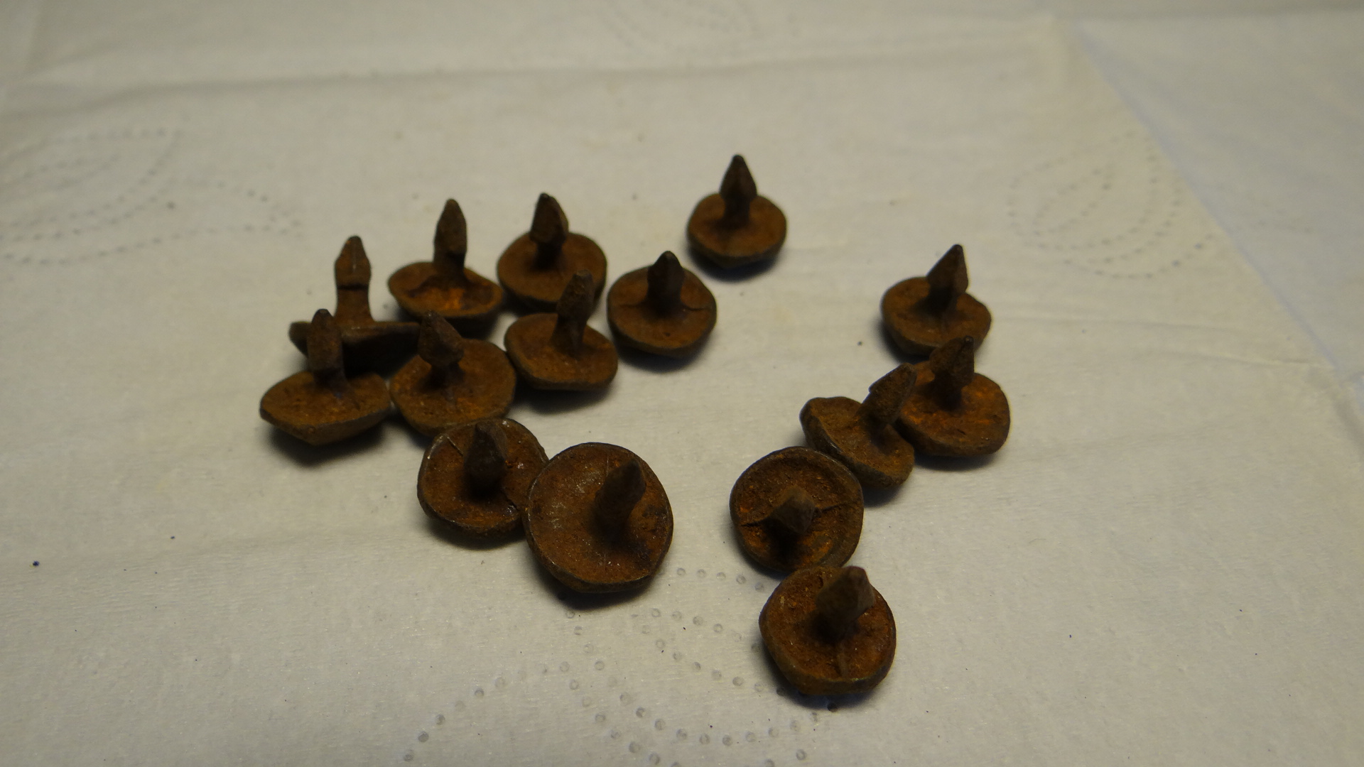 Teisi ei tea aga kolmandad paistavad olema needid, millega kinnitati kiivrivooder metallvitsa külge.