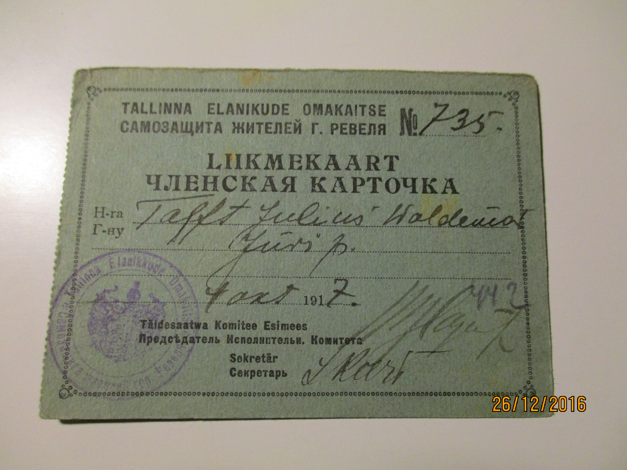Vähem kui 2 kuud tegutsenud Omakaitse liikmekaart aastast 1917.