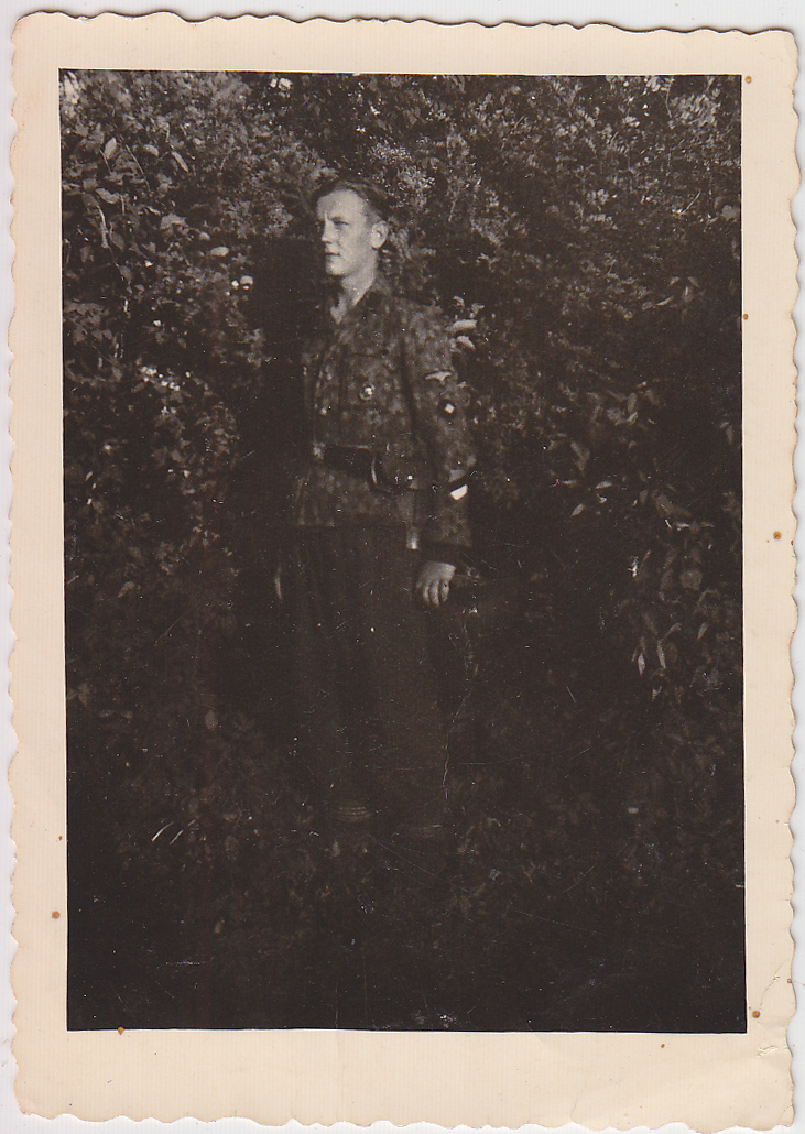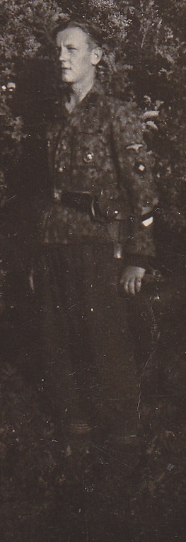 Pildistatud 1944. aasta suvel, auastmelt SS Oberschütze, mis on selline kummaline reamehe ja kaprali vahele jääv auaste. Teenistuskoht enam-vähem kindlasti 20. Eesti SS diviis. Vasakul rinnataskul on must haavatumärk.