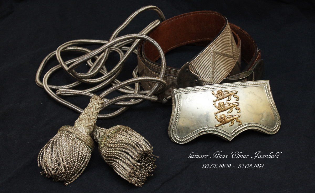 Leitnant Hans Elmar Jaanhold'i 1936. aasta ratsaväe nr. 4 ja nr. 5 vormikomplekti juurde kuulunud padrunitasku koos kanderihmaga ning vöö juurde kuulunud hõbedasest kardnöörist tutid. Leitnant Jaanhold langes 10.08.1941 Rapla lahingus.