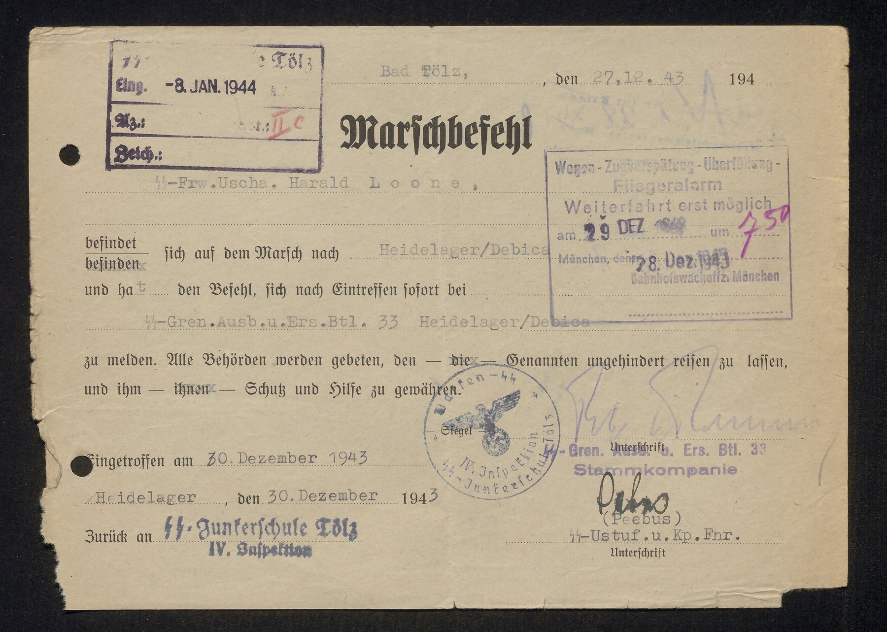 Mul on Harald Loone kohta teada et sündinud 10.5.1923 - kohta ei tea... Pähklamäe klassivend... koos Debicas... hiljem Tölzi ohvitseride koolis 30.3.1945... viimane auaste Standartenjunker d.Res.d.SS ja viimane sissekanne 14.6.1945 - Skriinimisel Regensburgi vangilaagris - ss-mehena ei vabastatud...