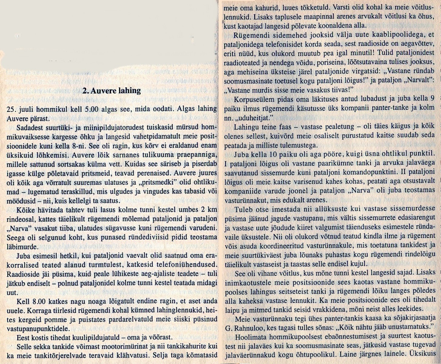 Voldemar Pinni lahingukirjeldus 1999. aastal ilmunud raamatust "Auvere sangar"