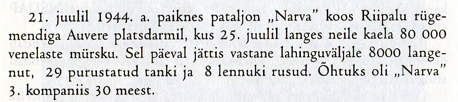 Mäletan, et sel ööl ma uinuda ei saanud - olukord oli liiga ärev. Mõtlesin meie kompanii poistele: “Kas nad suudavad vastu pidada?” Vastase poolel oli suur ülekaal nii elavjõu kui ka tankide osas. Kui major Riipalule alluvates üksustes oli umbes 2000, kõige rohkem 2500 meest, siis vastane võis meid rünnata mitme diviisiga. Oli ju Punaarmee rünnaku eesmärgiks Auvere juures rindest läbi murda, jõuda mereni Mummasaares ja armeegrupp “Narva” kotti võtta.