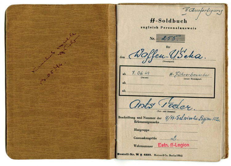Üks asine rindemehe Soldbuch - SS Freiwillige Oberscharführer Osvald Laidsalu.