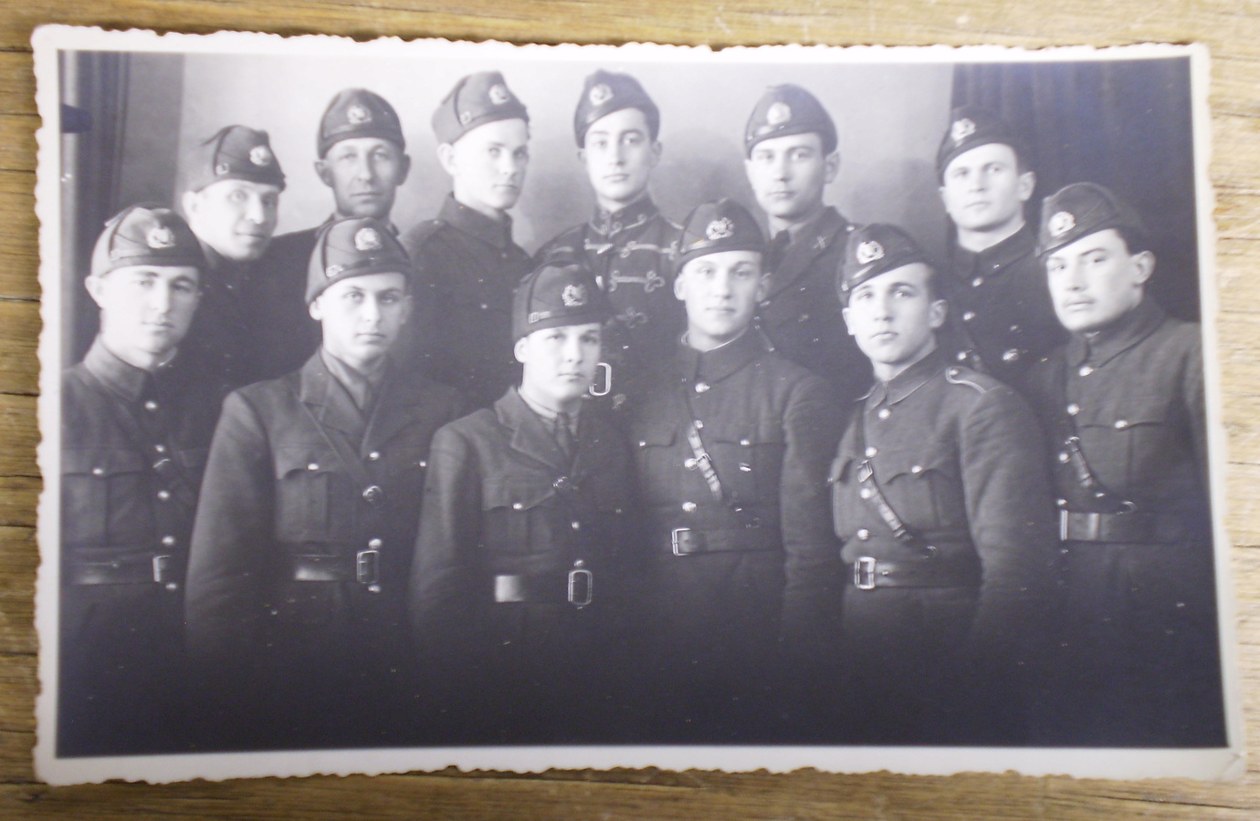 EW tunnused eemaldatud. Esireas, paremalt teisel mehel on vööl tuunitud Punaarmee komandöri rihm- täht on keskelt välja saetud.
