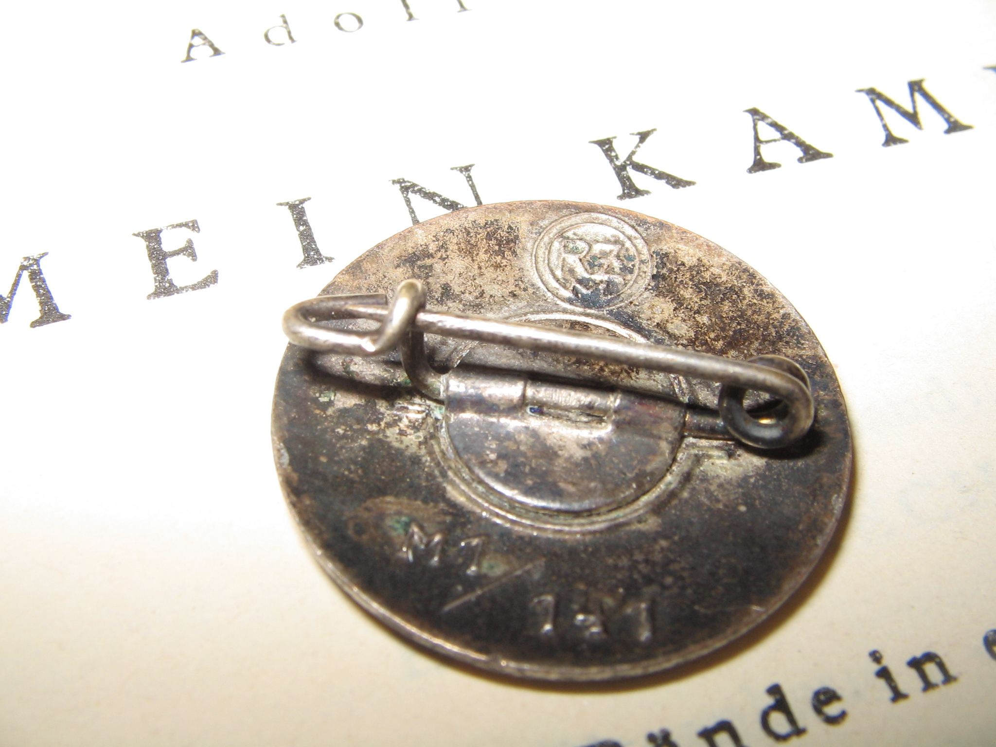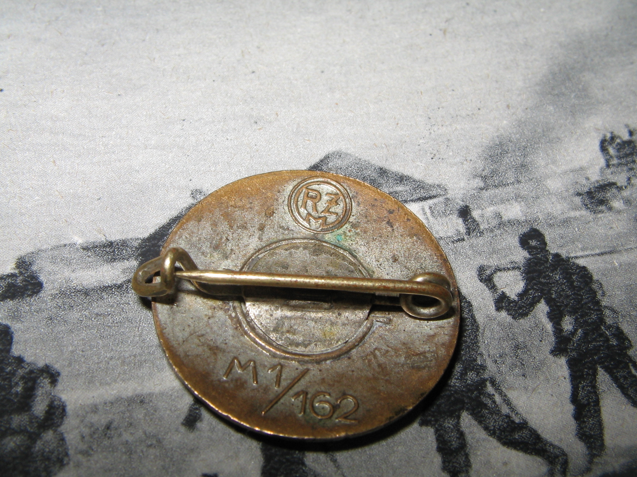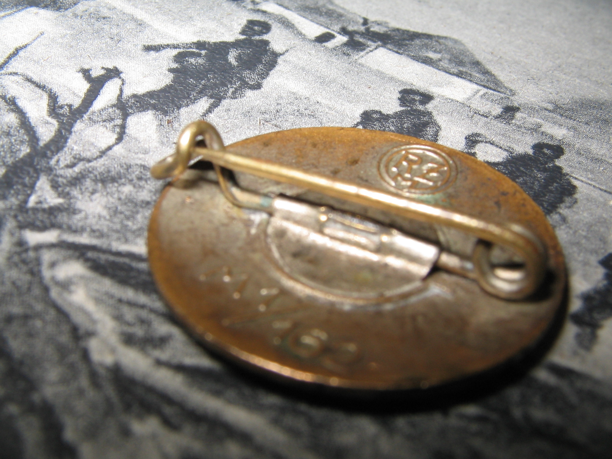 Märk on varasest RZM-perioodist. See on juba mitmes selline märk, millel on nõel deformeerunud ja lapikuks vajutatud. Mulle tundub, et selline deformatsioon on neil märkidel tehtud meelega, et oleks mugavam märki kanda. Samal eesmärgil on arvatavasti eemaldatud ka nõela tipp minu poolt varem postitatud GES.GESCH markeeringuga märgil. Kas keegi on midagi sellist ka enda märkide puhul täheldanud?